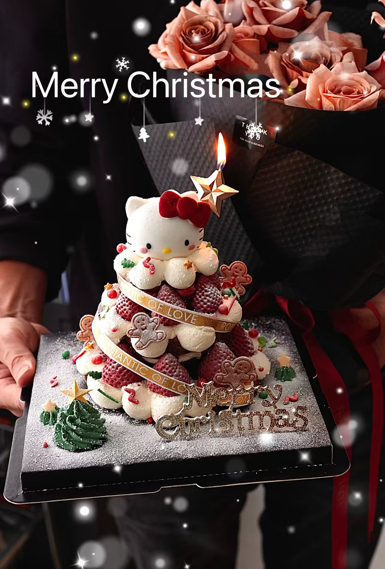 【圣诞Kitty】-翻糖造型-新鲜水果蛋糕