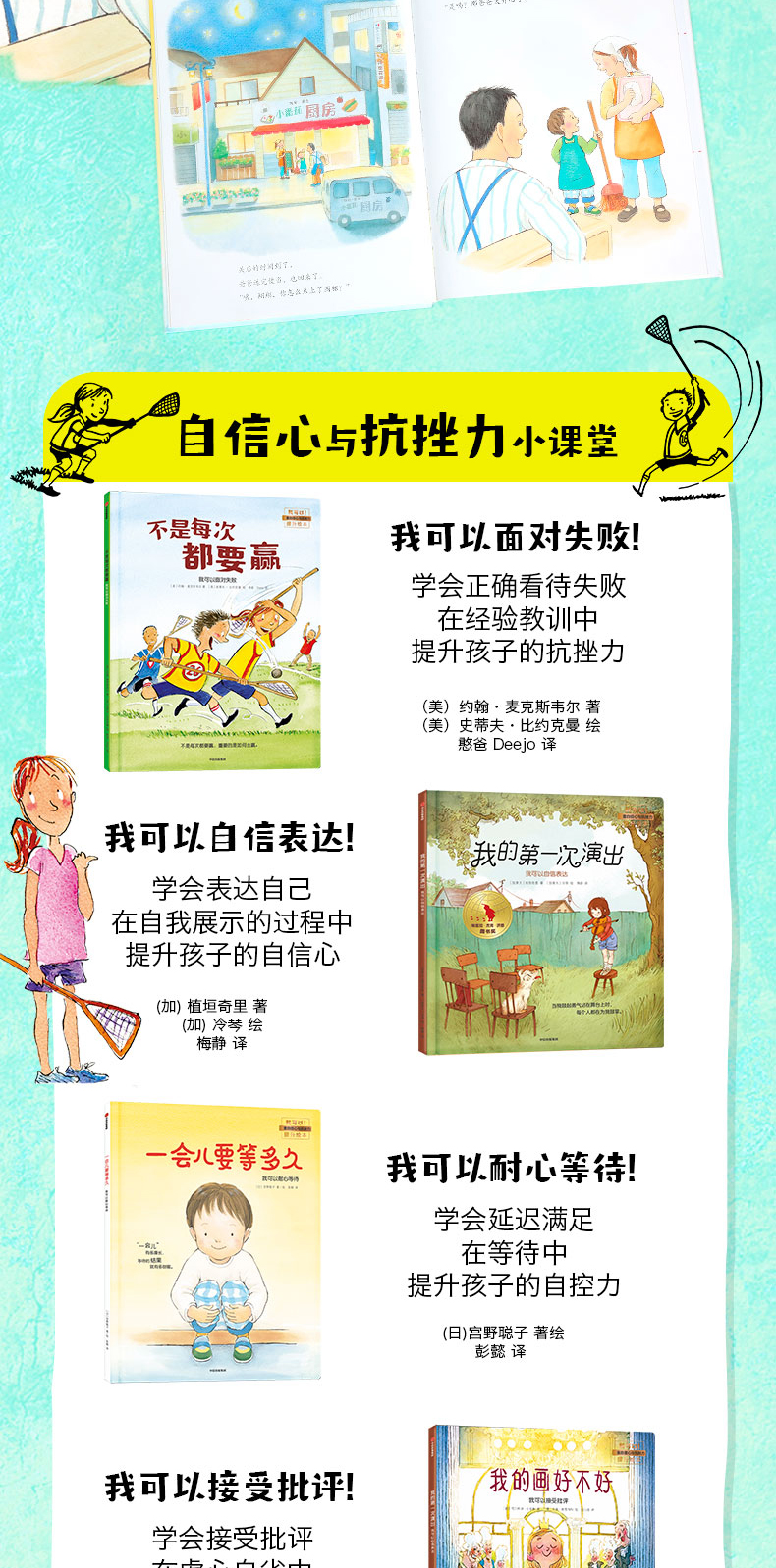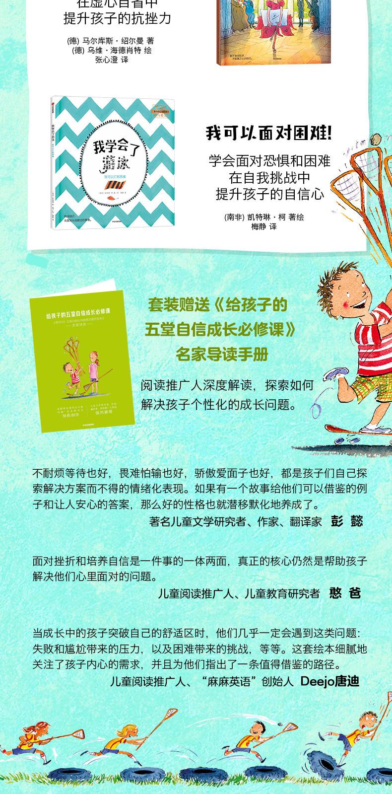 当成长中的孩子突破自己的区时,他们几乎会遇到这类问题:失败和尴尬带来的压力,以及困难带来的挑战,等等。这套绘本细腻地关注了孩子内心的需求,并且为他们指出了一条值得借鉴的路径。