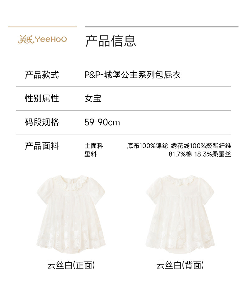 英氏婴儿连体衣夏季新款女宝短袖裆哈衣宝宝爬服YRHGJ2S035A