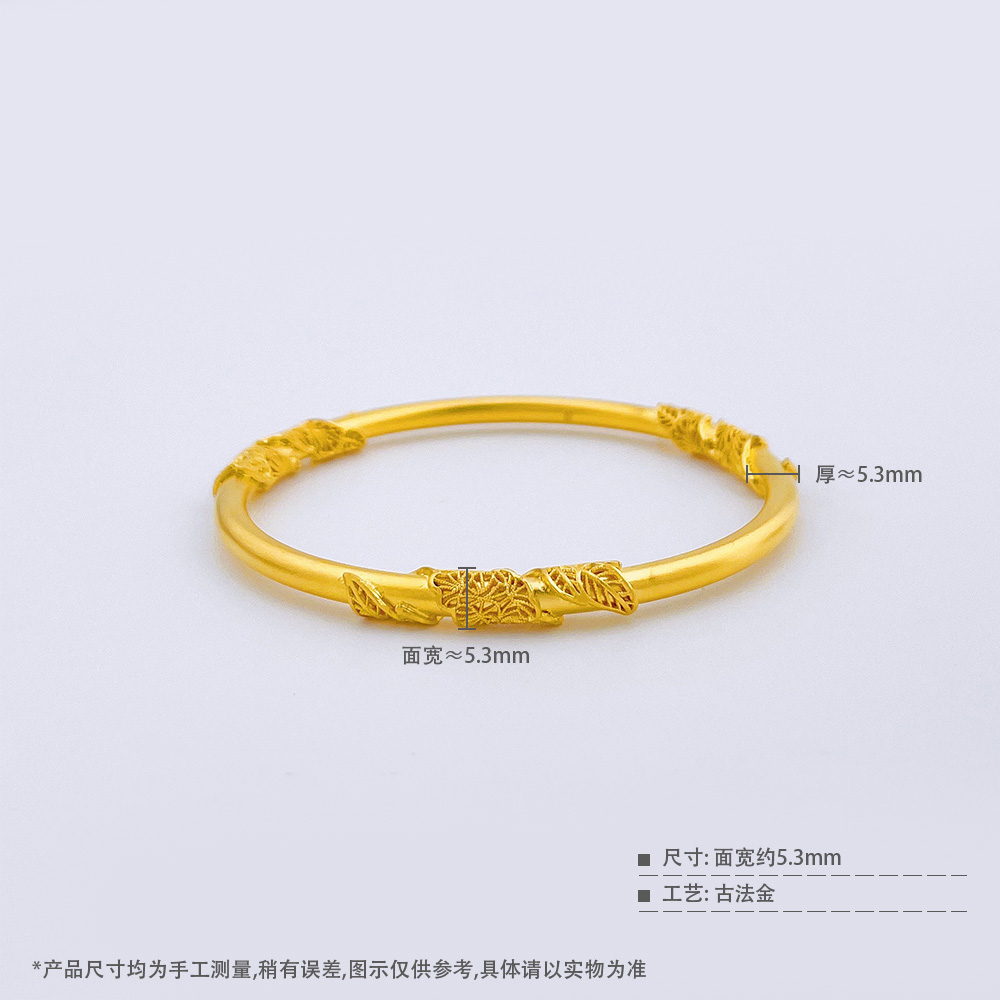 【限时克减150元】足金999.9 古法空心固口繁花相思藤手镯(面宽约5.1-5.5mm,厚约5.3mm)(ANWZGFSZ00170),(预售产品下单后不退款不退货不换货不补差价)