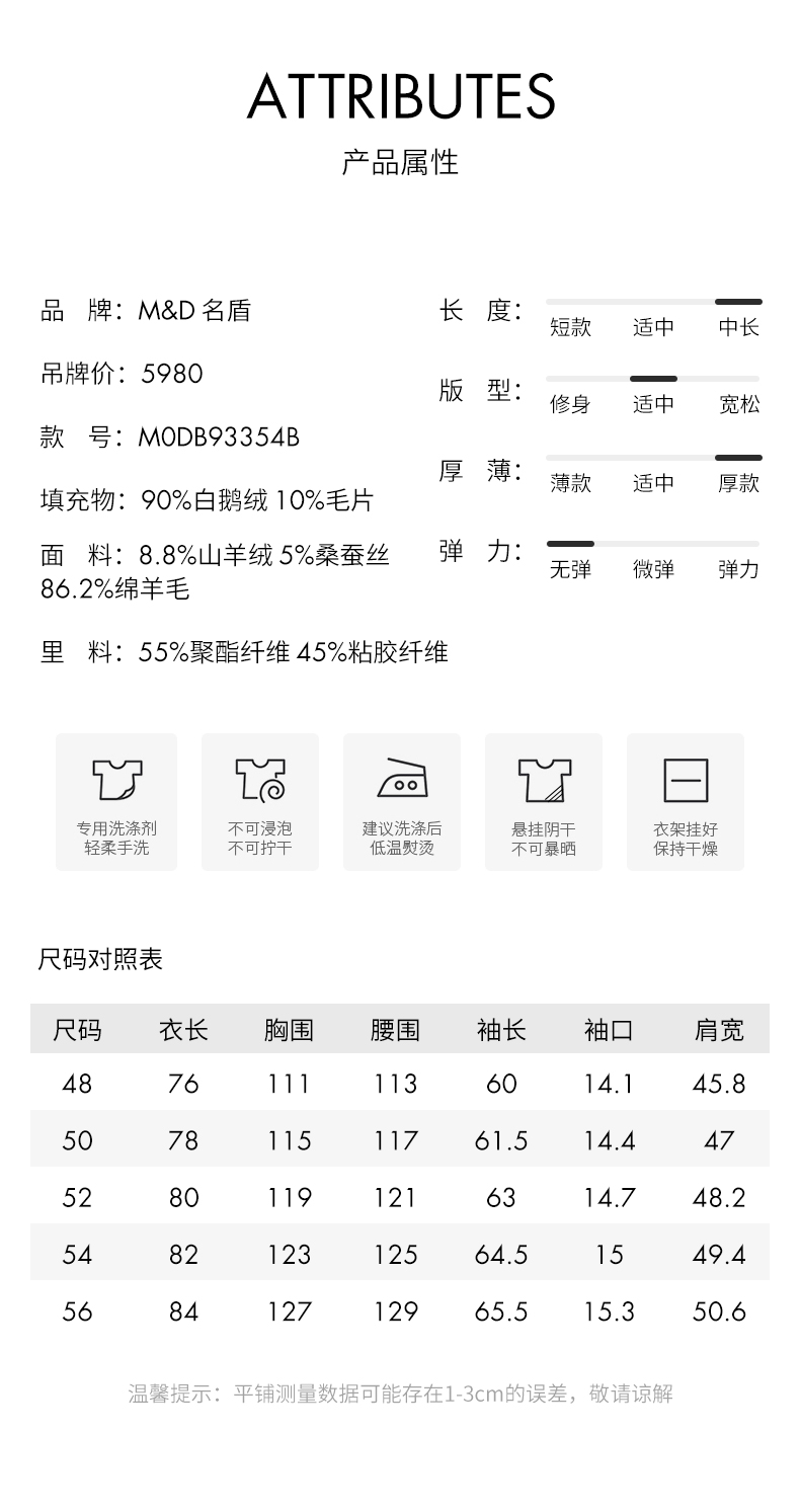 | 袖型: 散口袖 | 填充物: 白鹅绒 |