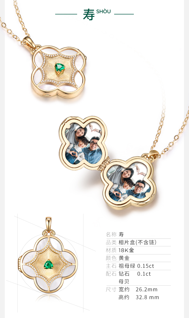 【寿】JULEEJULEE茱俪东方系列福禄寿禧母贝款相片盒吊坠