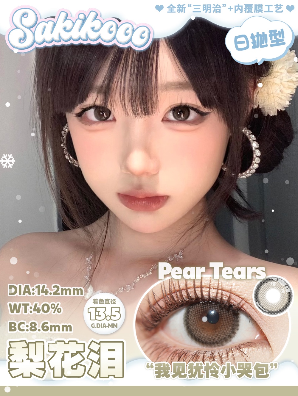 暴力推荐 sakikooo日抛 梨花泪 茶棕色 14.2mm 日抛无售后!!有同款年抛