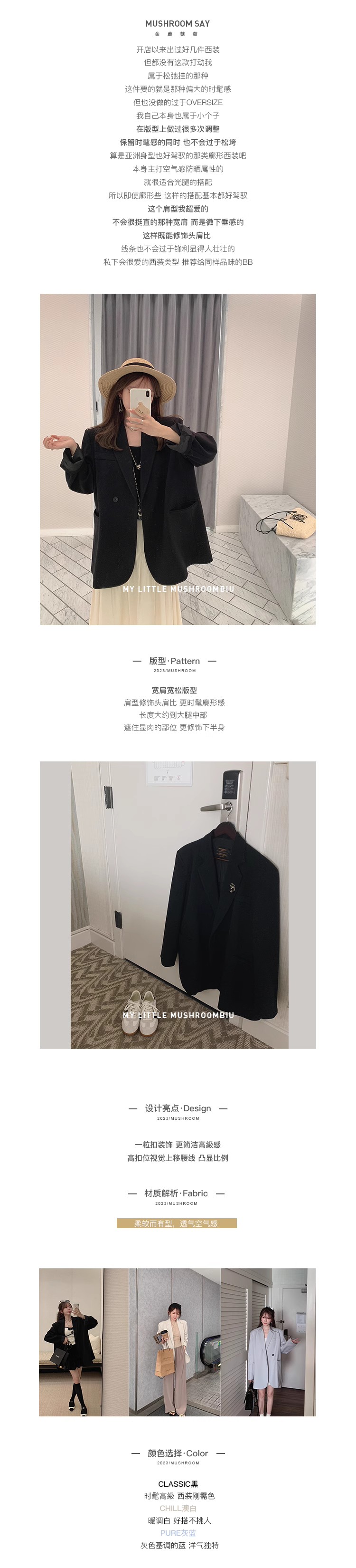 金蘑菇菇 minty ice 新季冰氧防晒西装/ 高级感西装外套韩版宽松