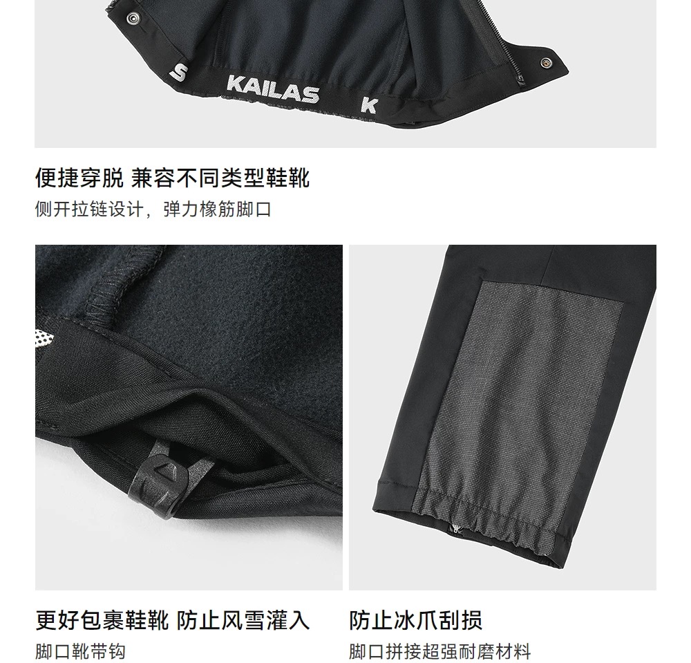 ✅ 脚口拼接强耐磨面料,防止冰爪刮损