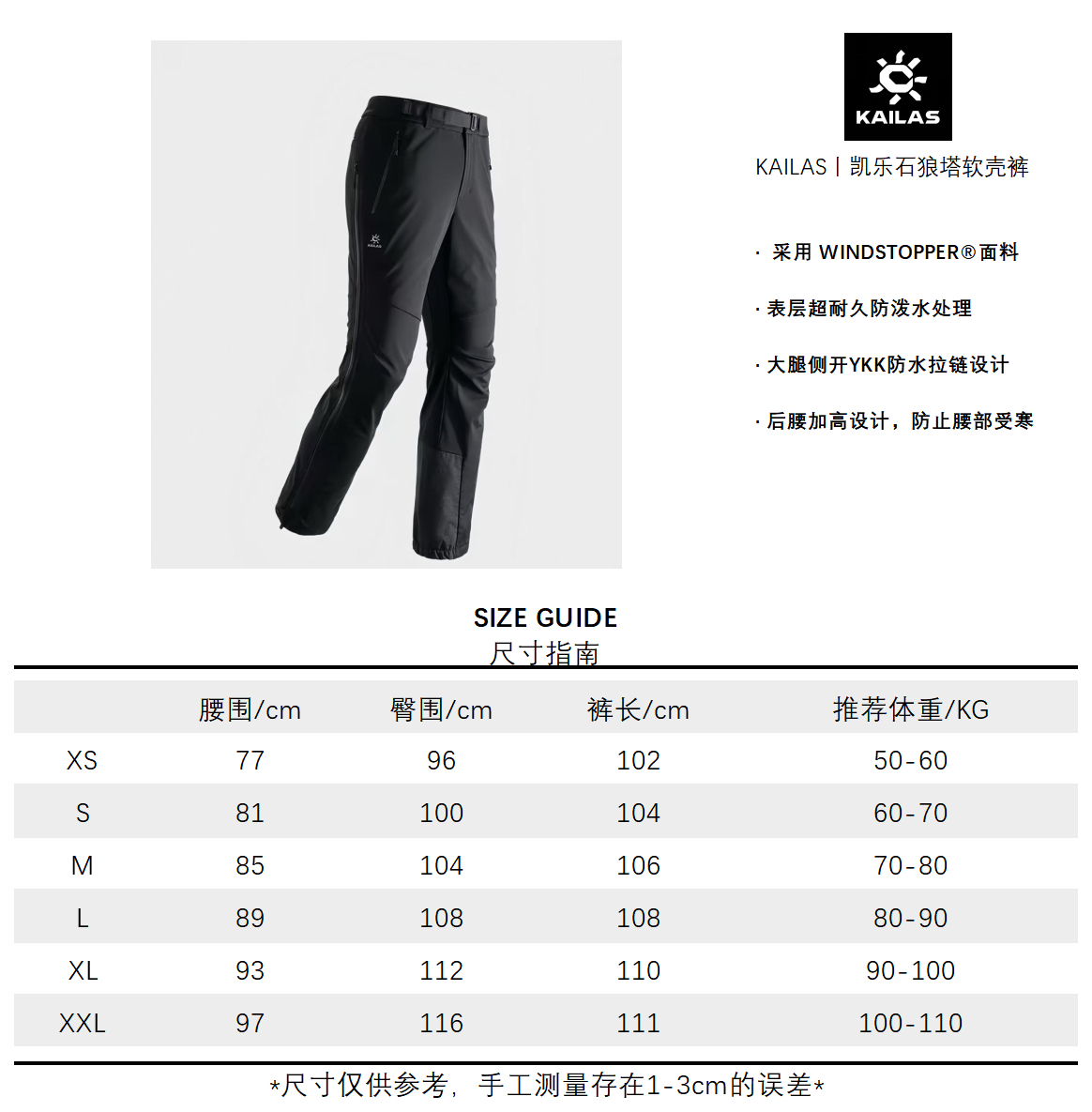 KAILAS凯乐石狼塔软壳裤GTX防风防泼水加绒保护