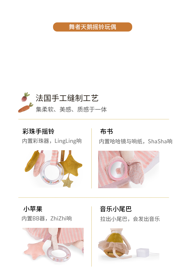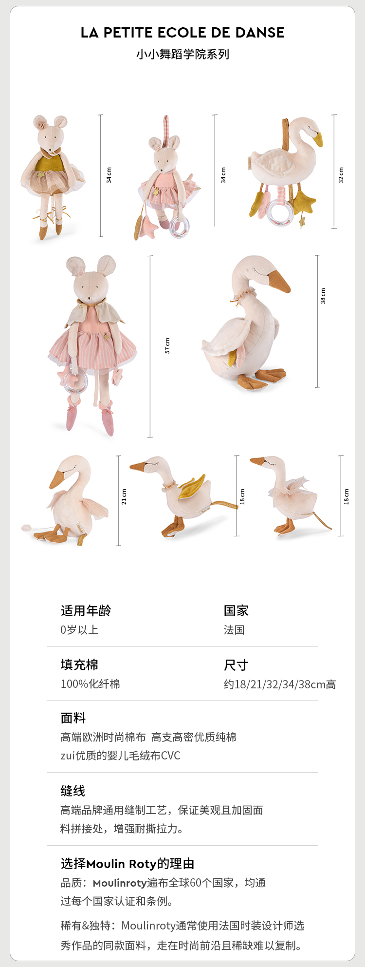 Moulin Roty 舞者天鹅玩偶 多功能/启蒙 音乐玩偶 适合0岁以上 内置音乐功能 小小舞蹈学院系列 法国品牌-667035