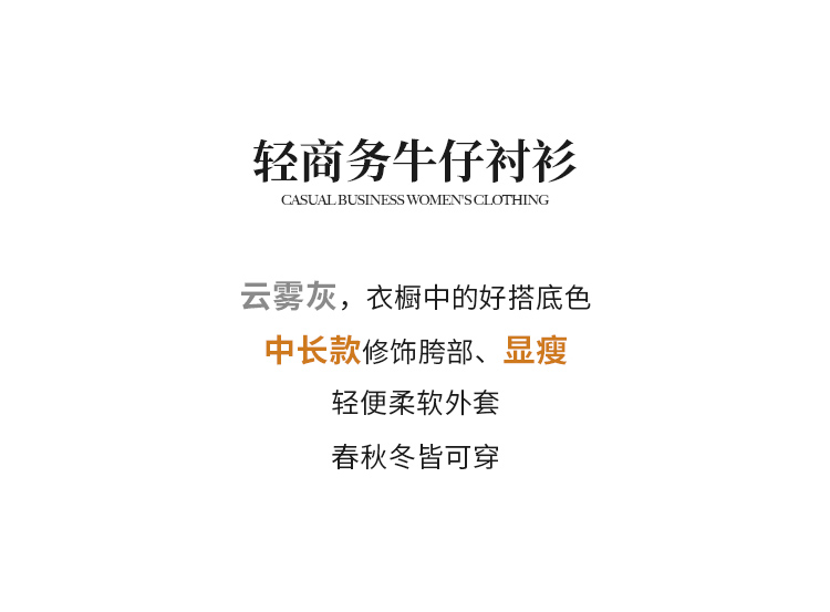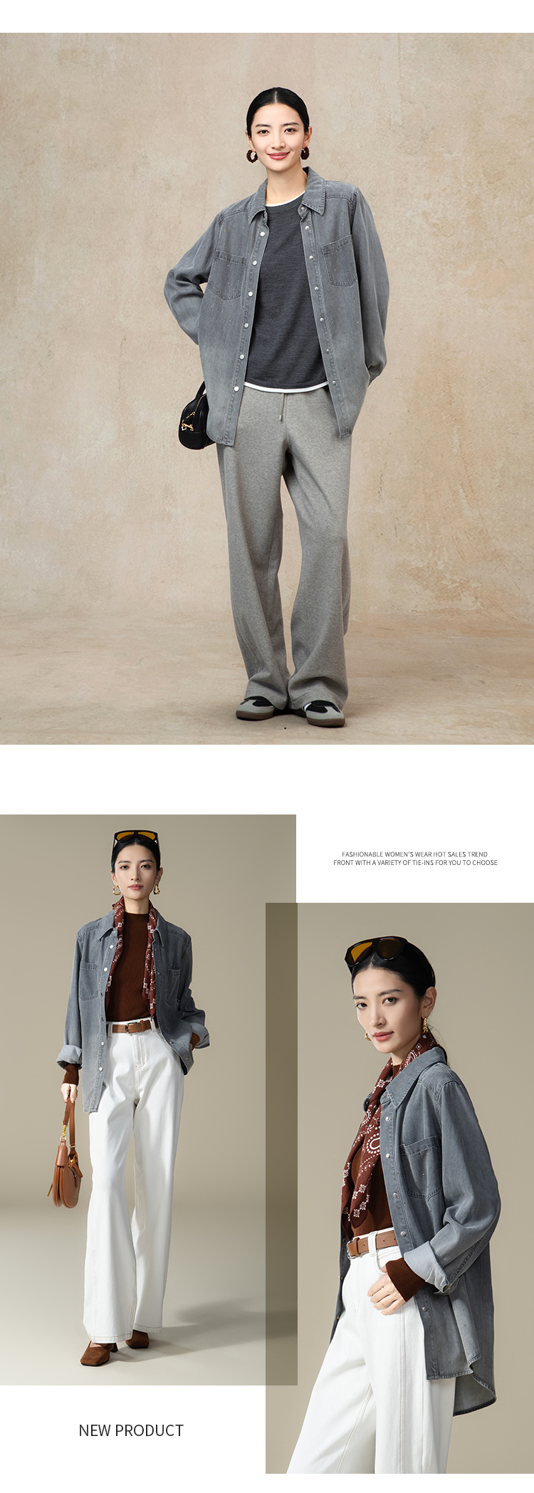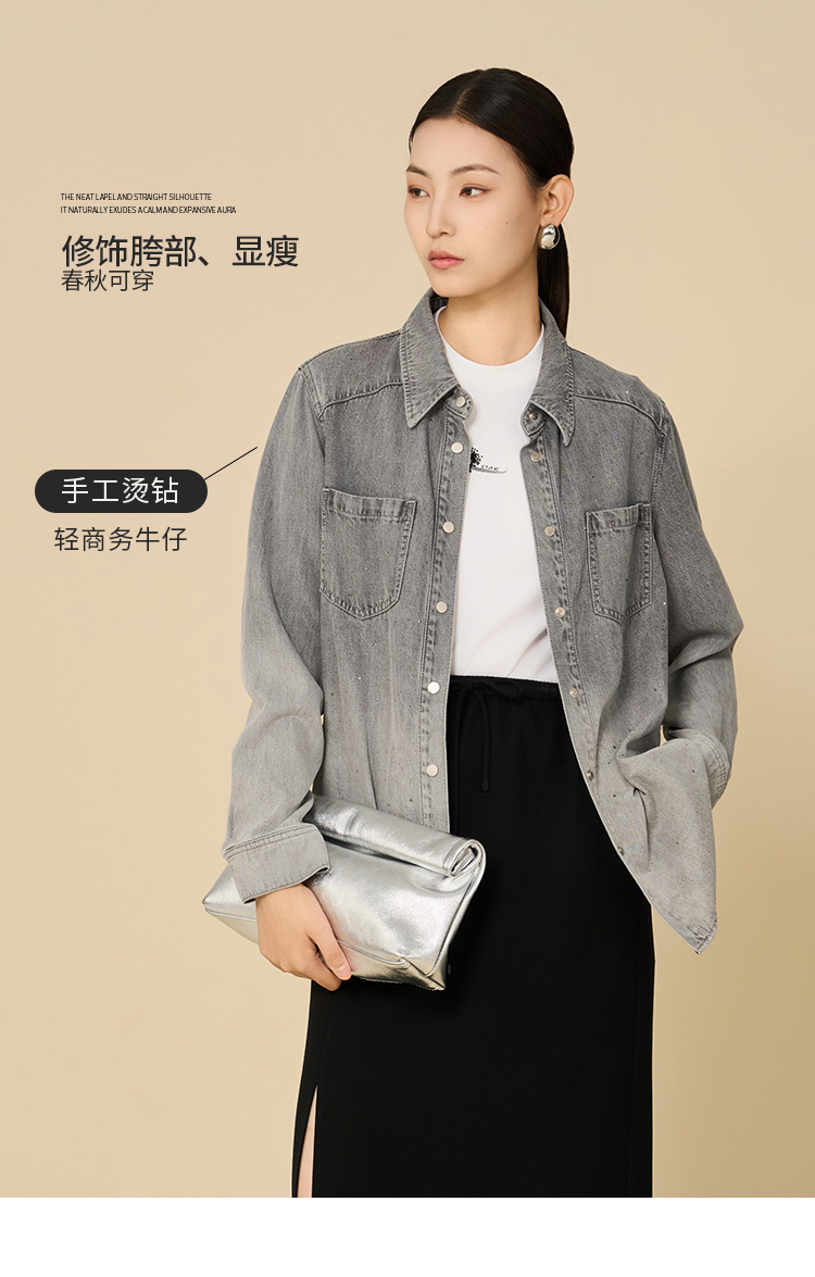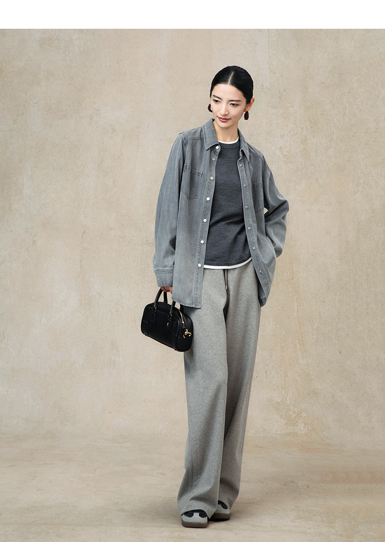【商场同款】CNB5896 “ 静奢衬衫 ” 云雾灰色柔软渐变直身型牛仔衬衫