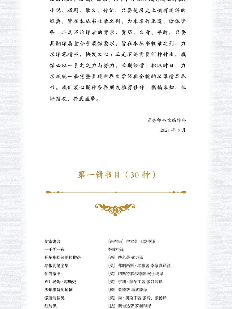 ·世界文学,完整呈现:不计代价,长期积累,力求成就反映世界文学经典全貌的汉译精品丛书。