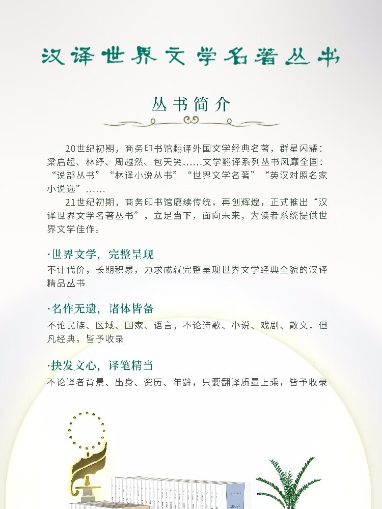 21世纪初期,商务印书馆赓续传统,再创辉煌,正式推出“汉译世界文学名著丛书”,立足当下,面向未来,为读者系统提供世界文学佳作。