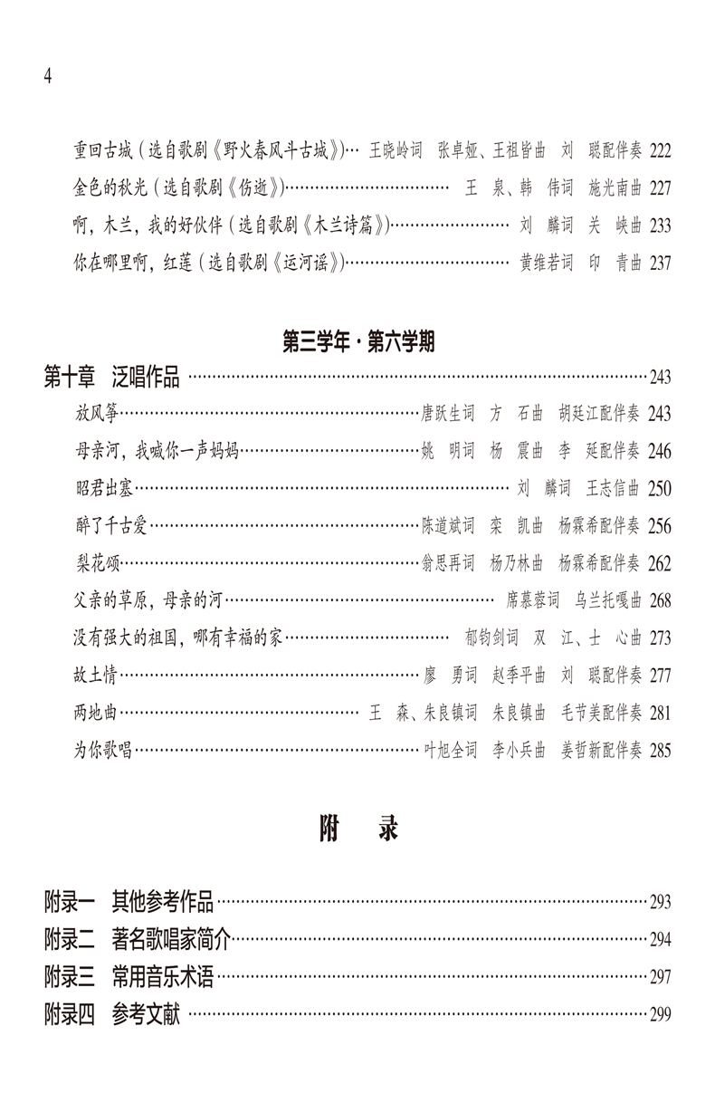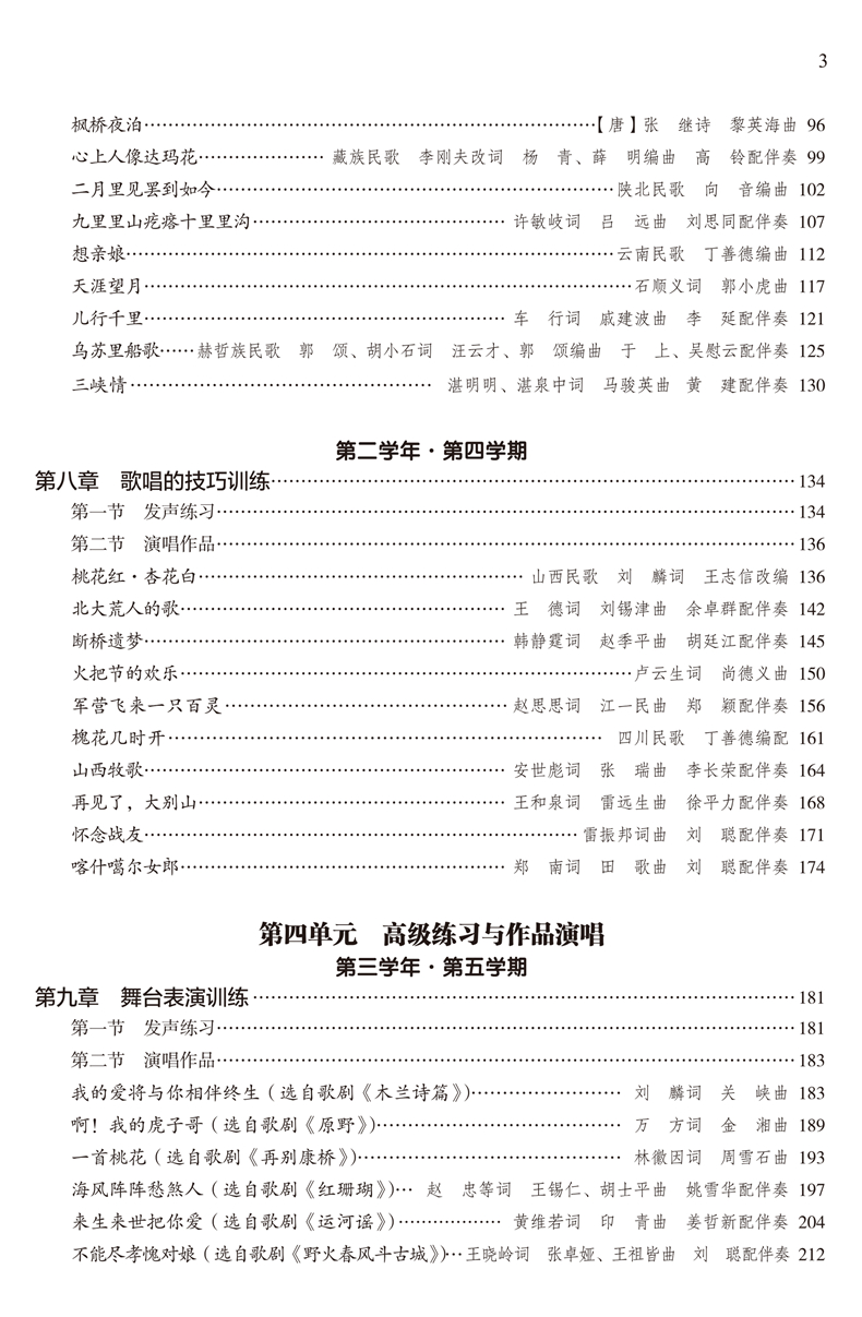本卷教材以遵循声乐教育规律为宗旨,以学生身心发展为依据,以培养高素质、高技能的实用性音乐表演人才为目的,在编写过程中突出专业性和实用性,强调理论与实践相结合,尤其重视实践教学,尽量做到深入浅出。此次五卷系列教材的出版,能很好地提高艺术高职院校学生的实际应用能力,增强其就业竞争力及岗位适应能力,并弥补了全国艺术职业院校声乐专业暂缺规范、系统教材的遗憾,对实现高等艺术职业教育的培养目标具有积极地促进作用。