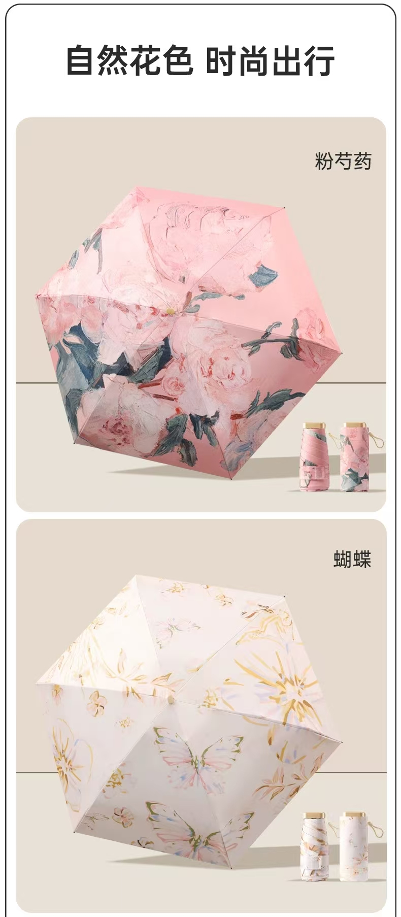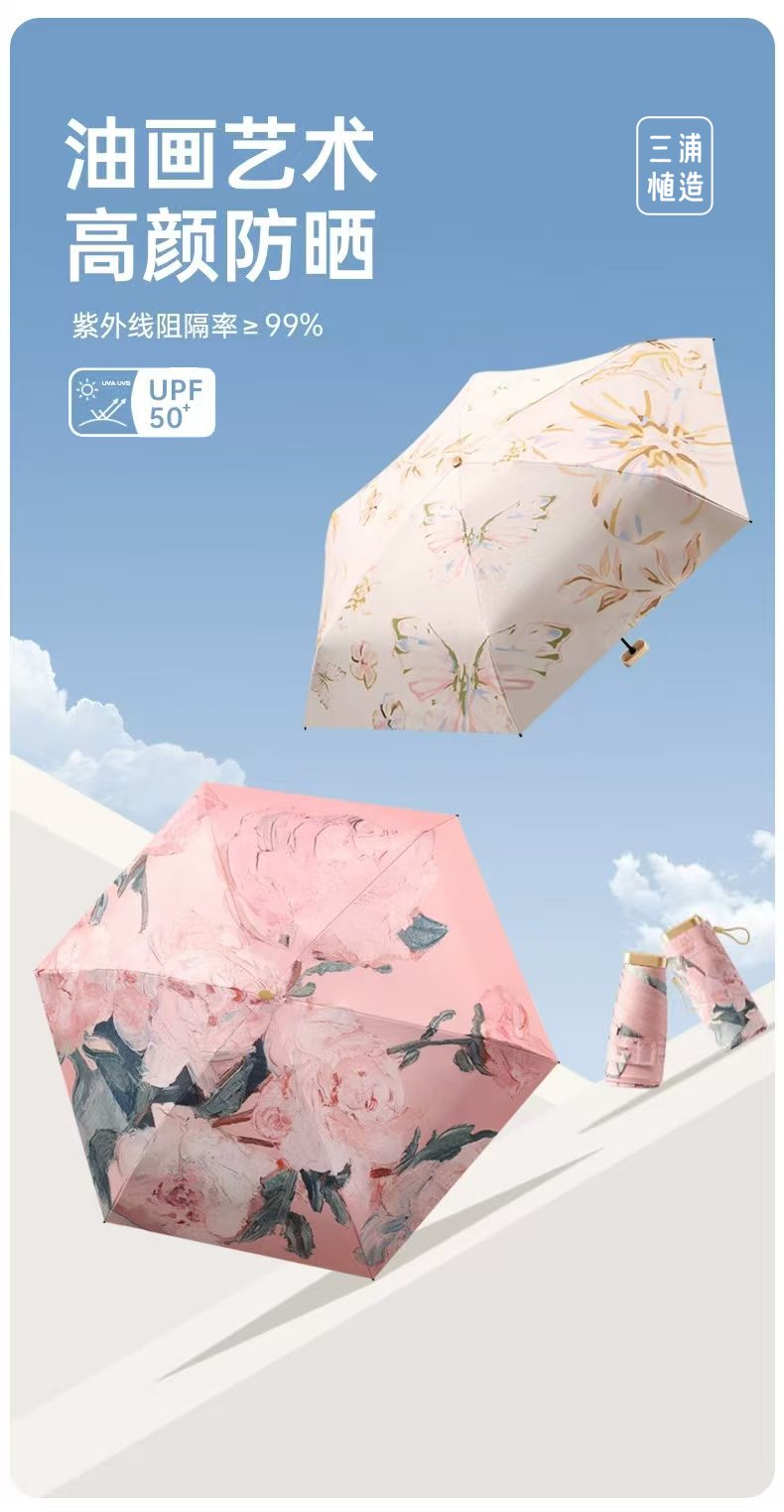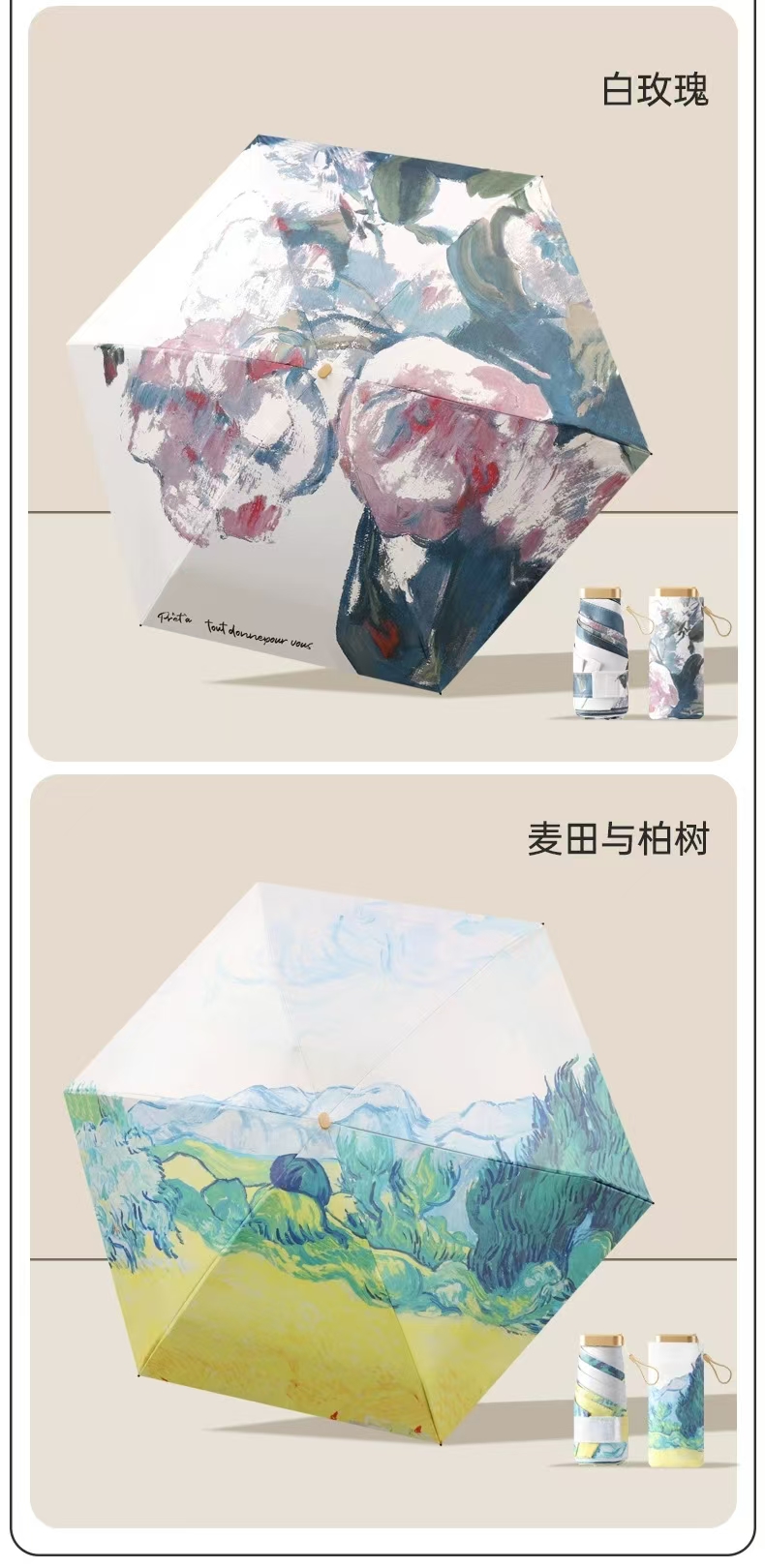 三浦植造MINI油画胶囊伞,UPF50+专业级防晒,有效阻隔99%紫外线,超轻便携设计,4款经典油画印花