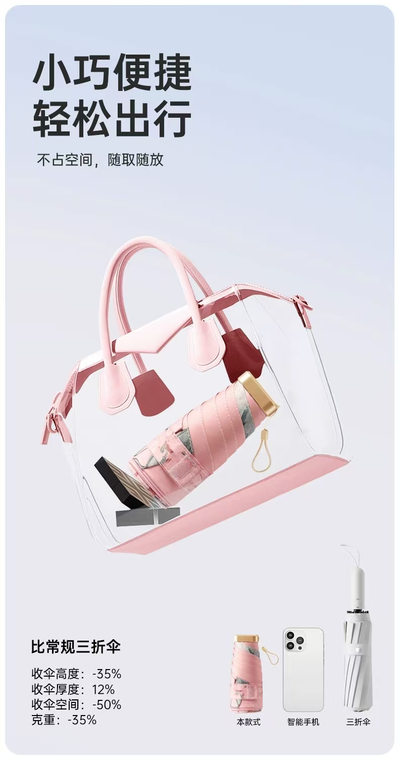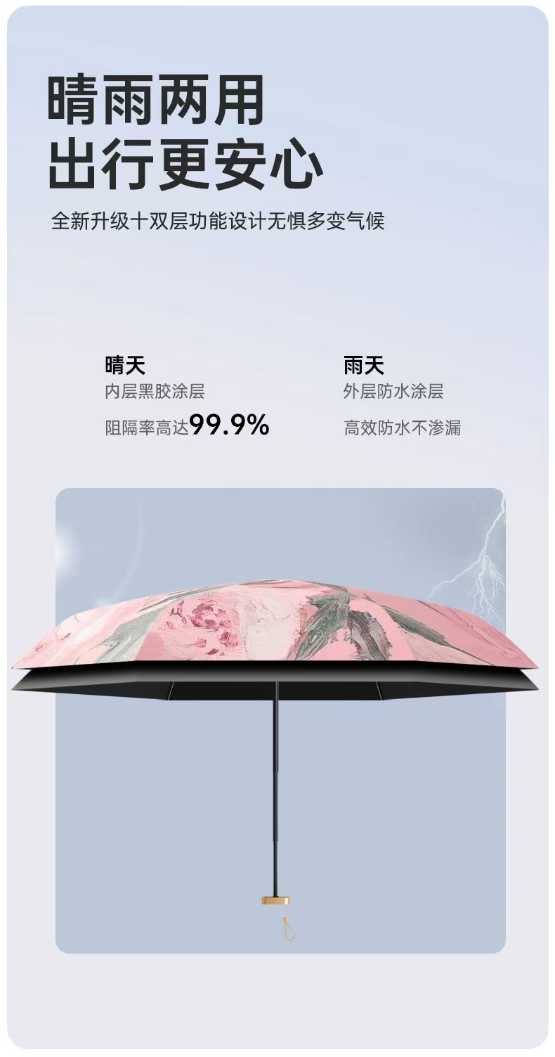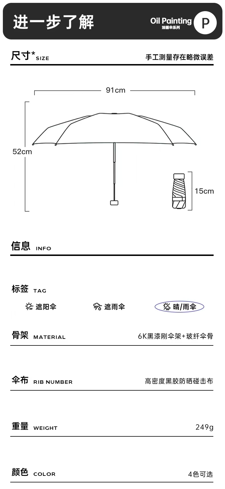 三浦植造MINI油画胶囊伞,UPF50+专业级防晒,有效阻隔99%紫外线,超轻便携设计,4款经典油画印花
