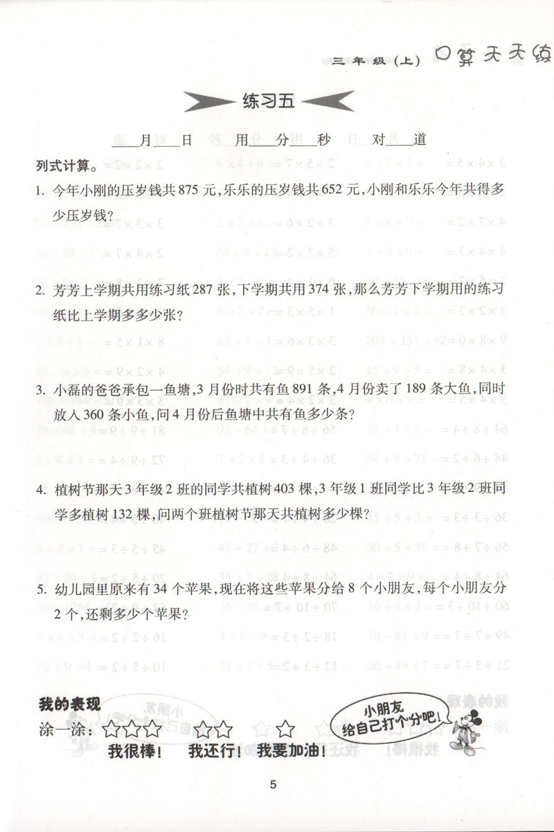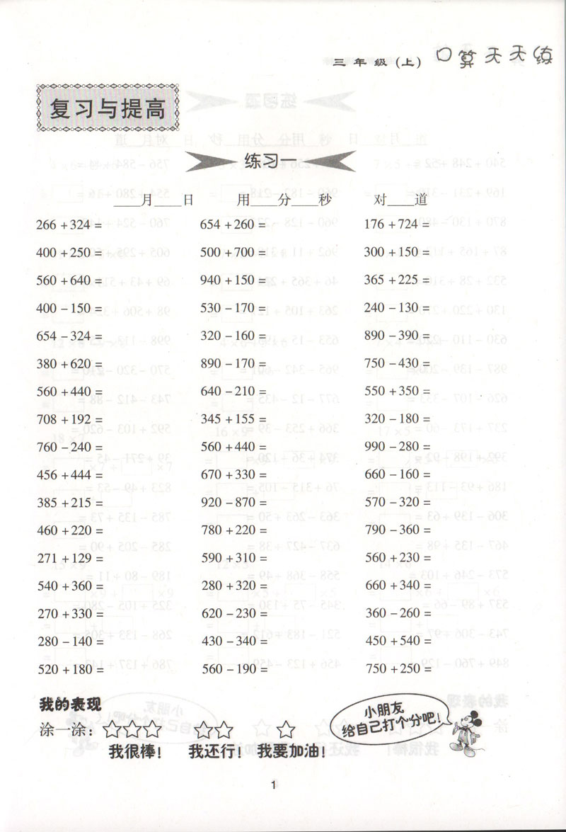 钟书金牌小学生口算天天练 3年级/三年级上 第一学期 钟书正版小学生数学辅导书 小学教辅读物新课标数学资料