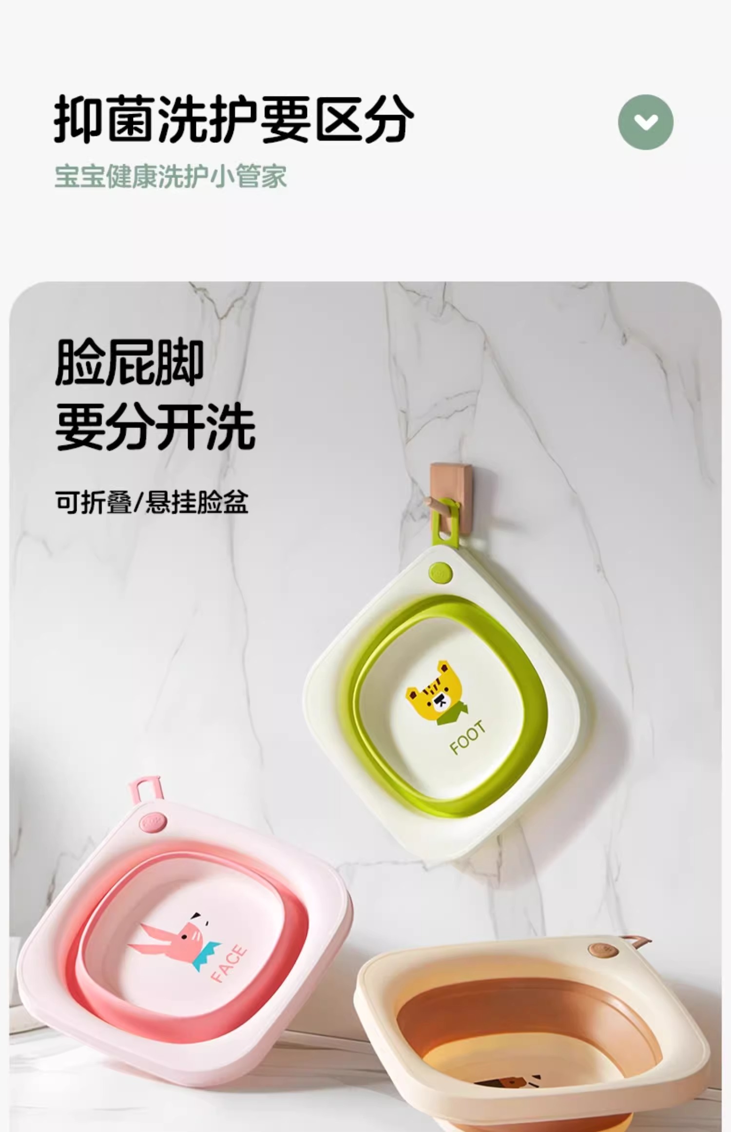 可优比婴儿折叠脸盆宝宝洗脸盆新生儿洗屁股盆便携式儿童专用