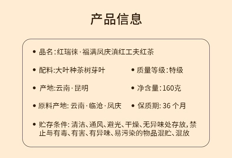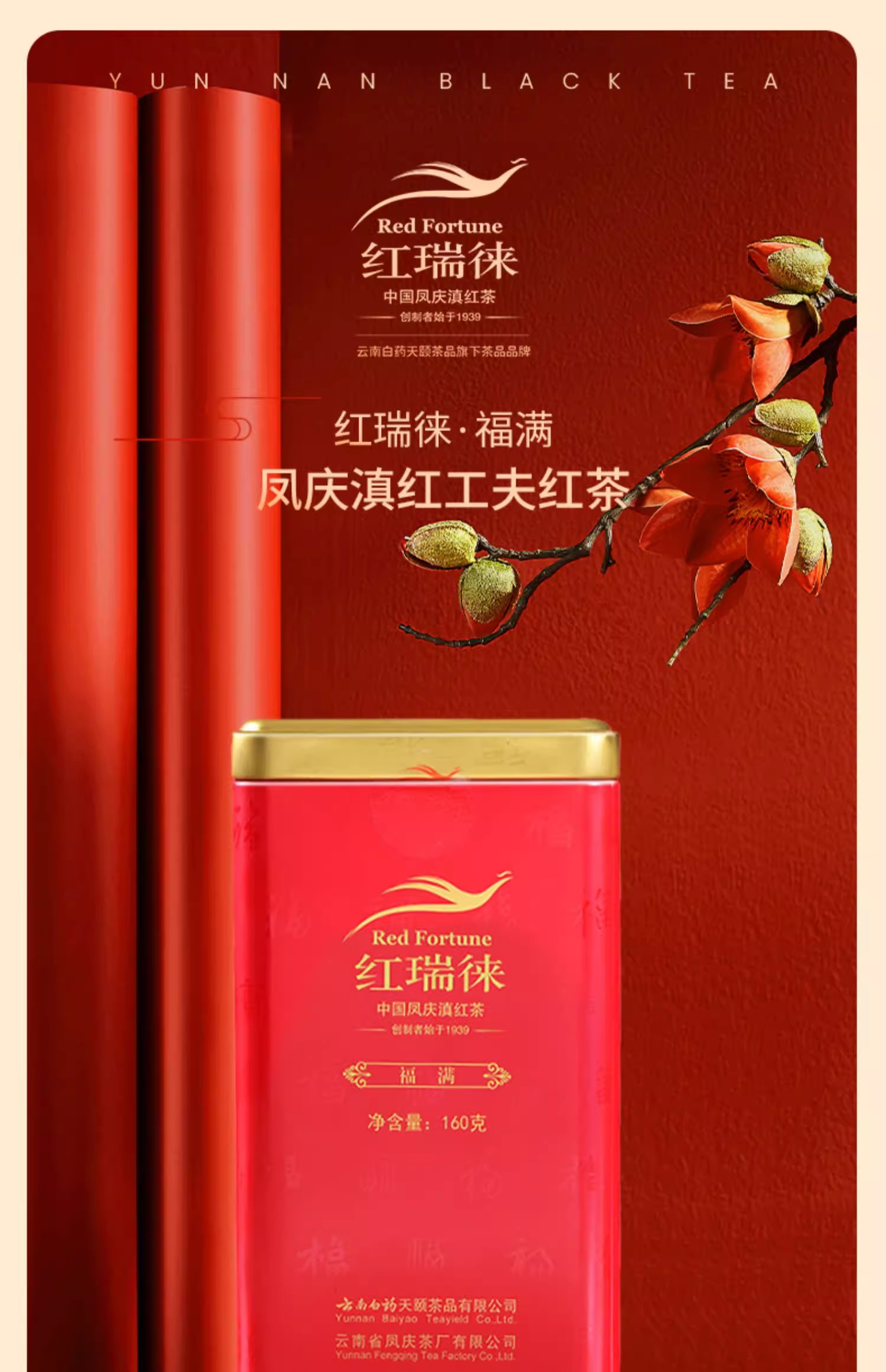 【官方正品】红瑞徕·福满正宗凤庆滇红茶160g铁罐装特级云南工夫红茶自主生态茶园基地云南白药天颐茶品
