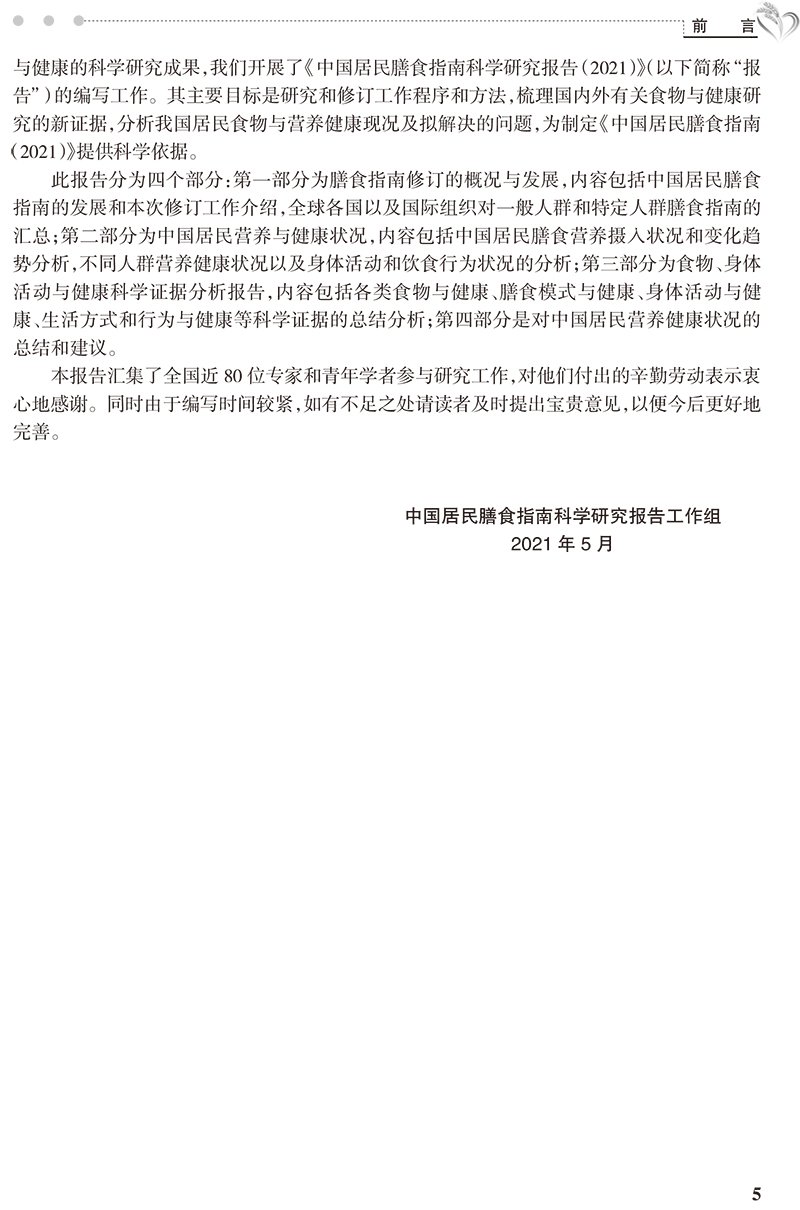 中国居民膳食指南科学研究报告2021 中国营养学会 著 新版膳食指南合理膳食模式食物选择与健康 人民卫生出版社9787117321525
