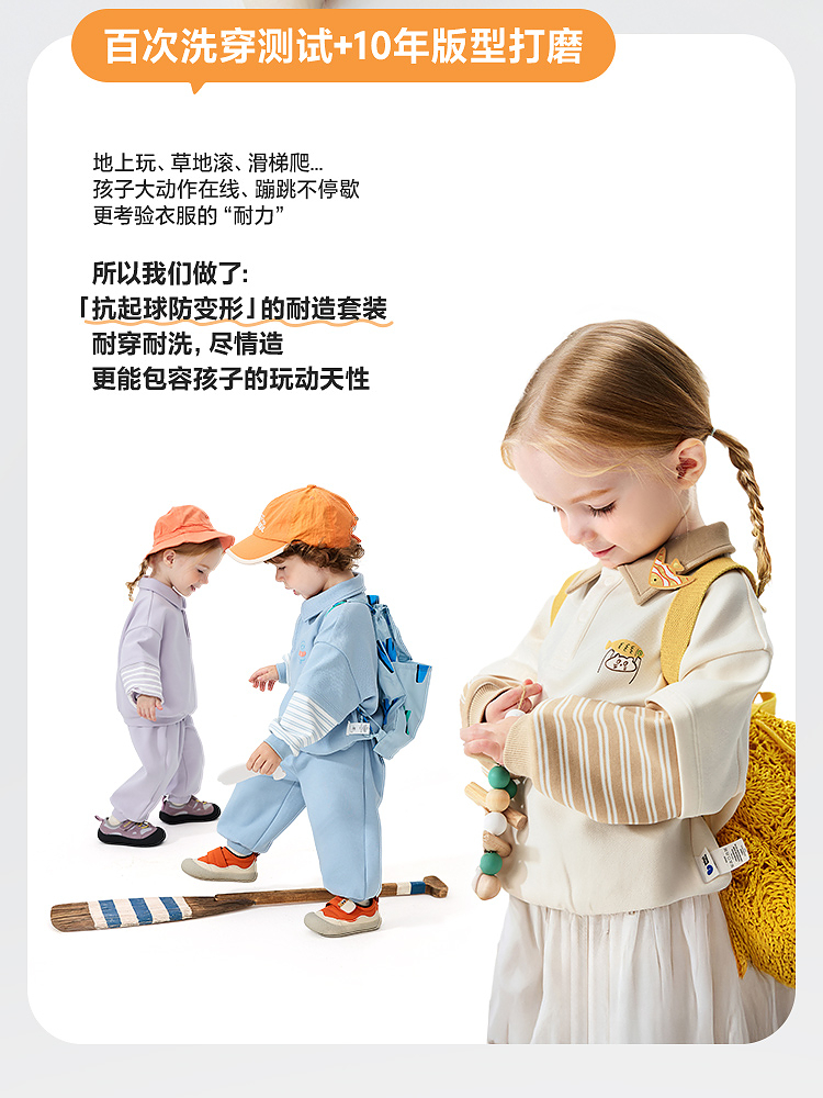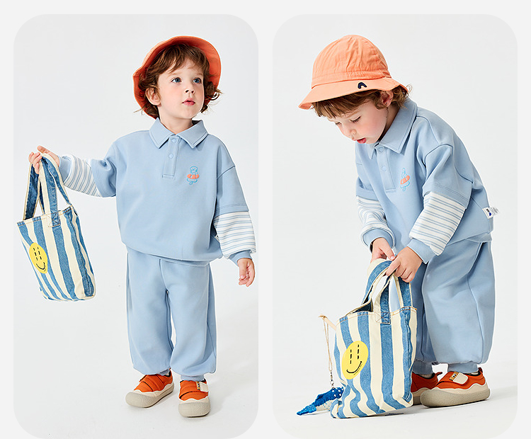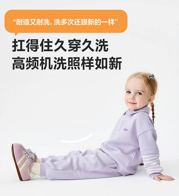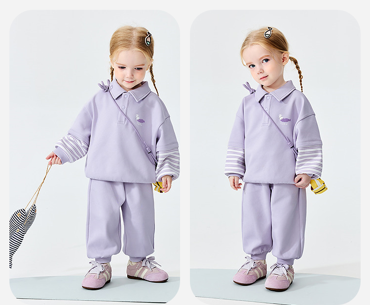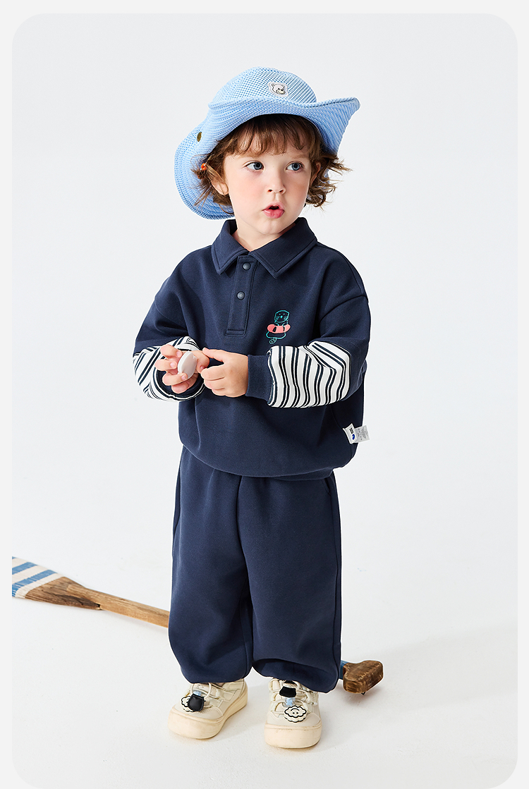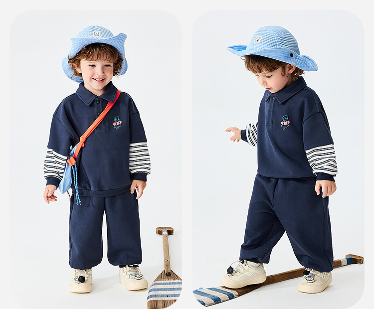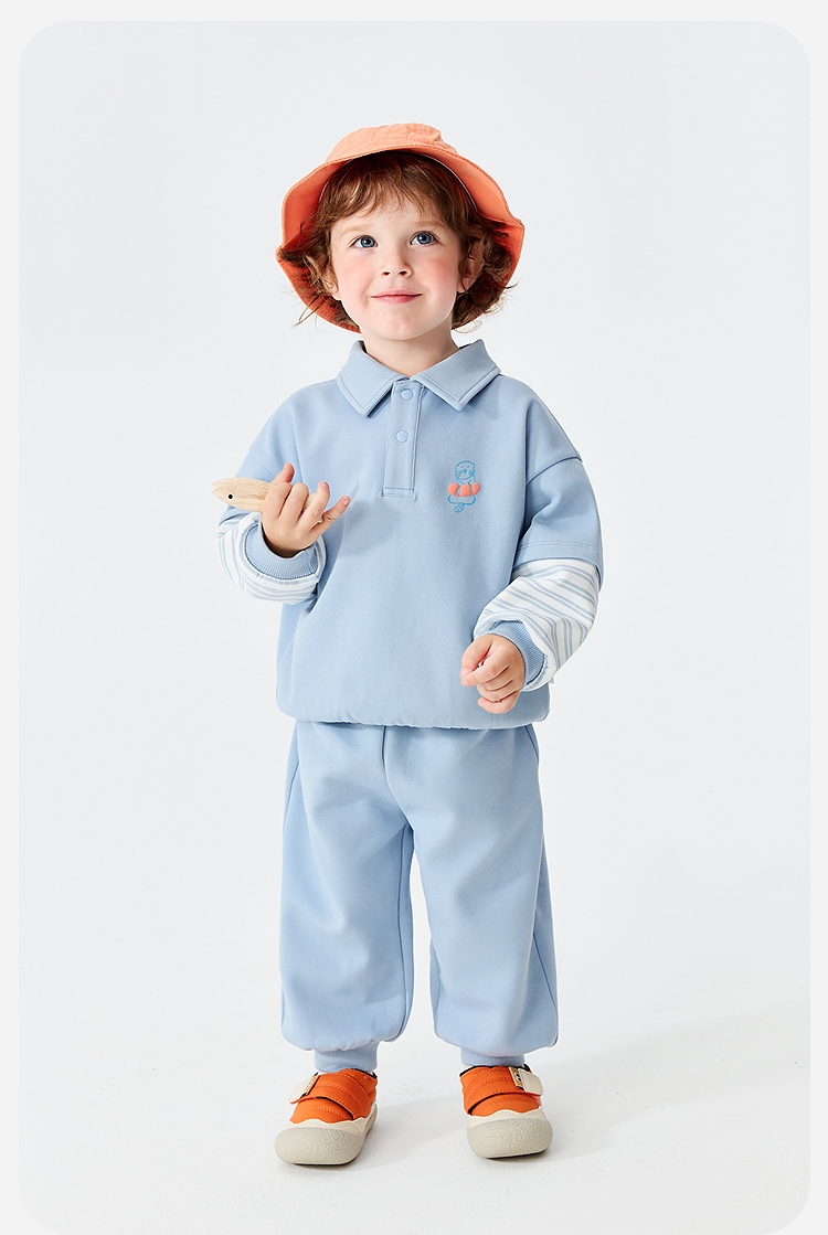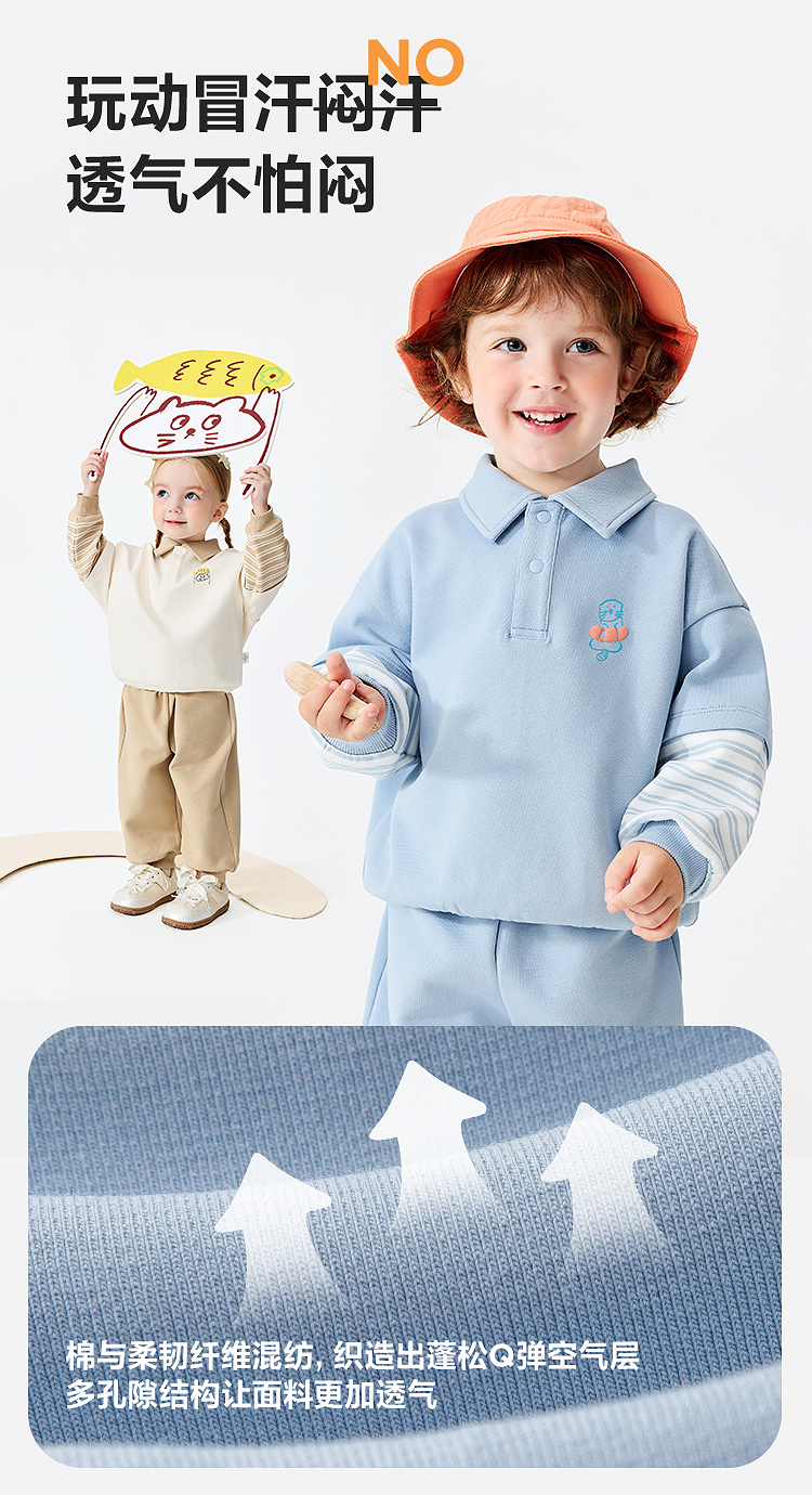 迷你巴拉男女童套装儿童假两件不易起球变形卫衣卫裤2026春新品