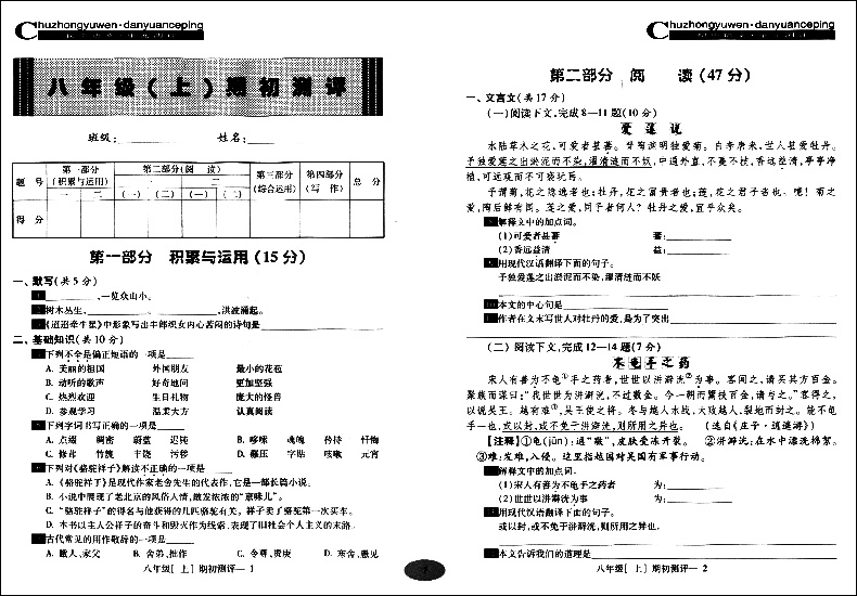 2020年新版 现代文品读文言诗文点击 8年级上册/八年级第一学期 配套赠阅单元测评 语文教材同步导读与训练 光明日报