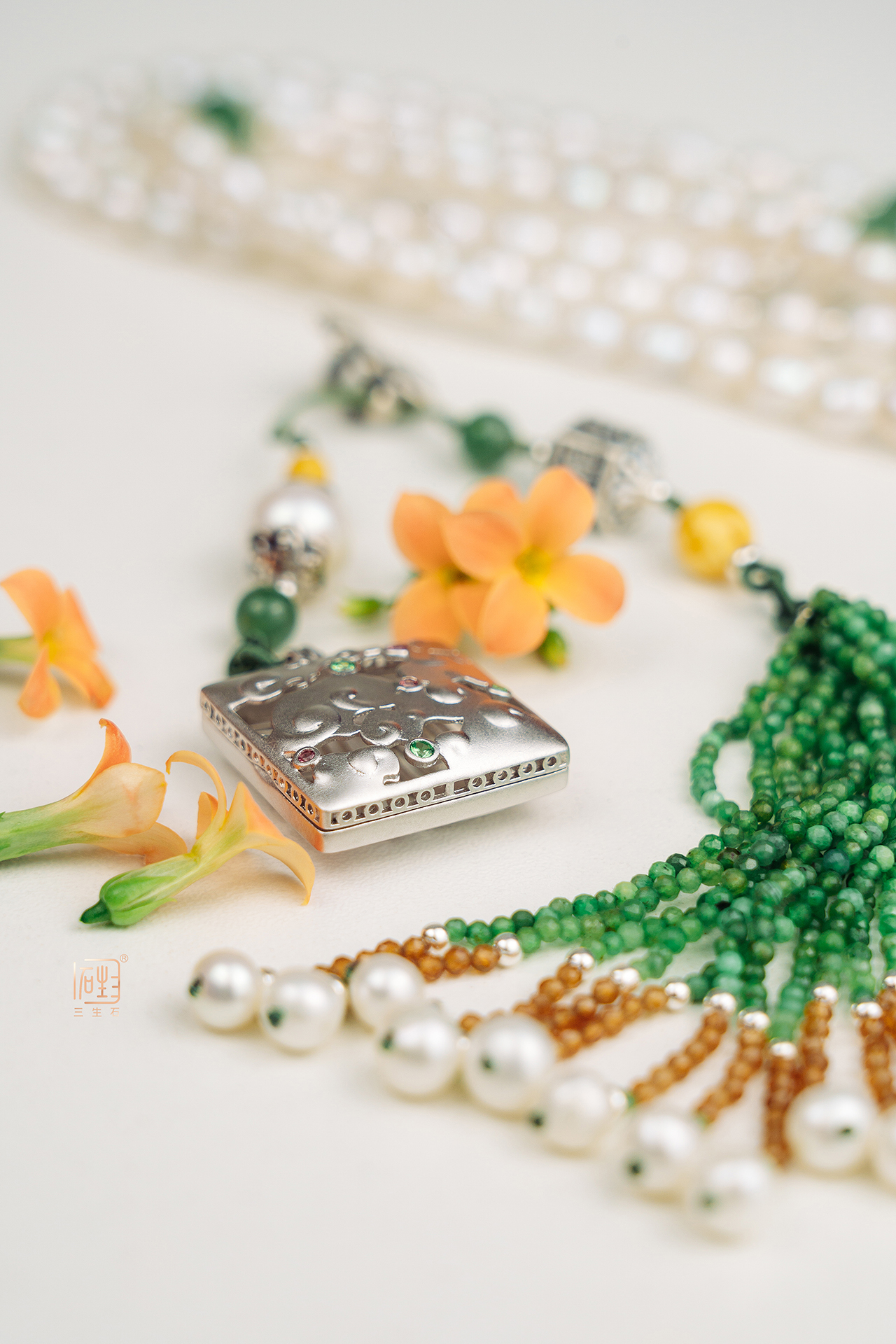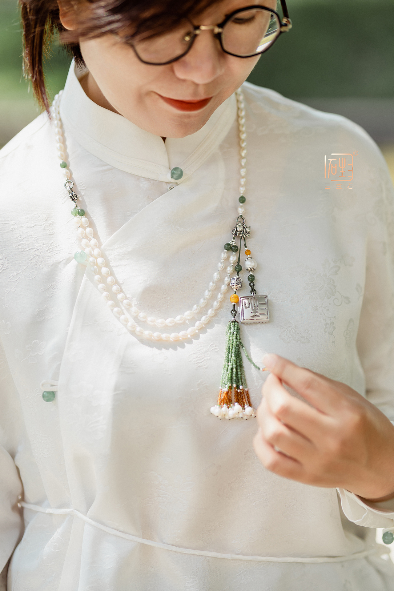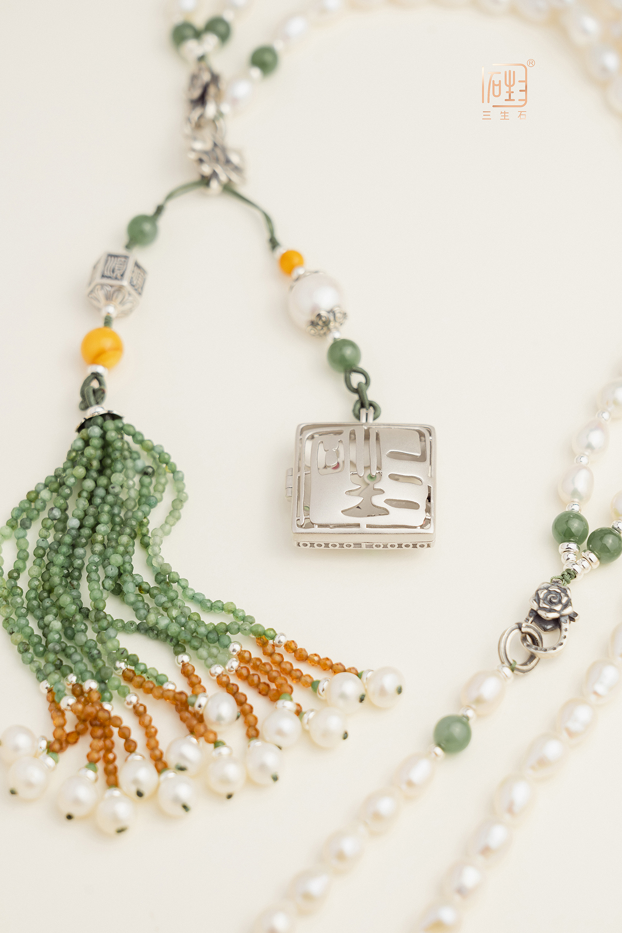 —天然珍珠蜜蜡碧玉国风设计款多用长链