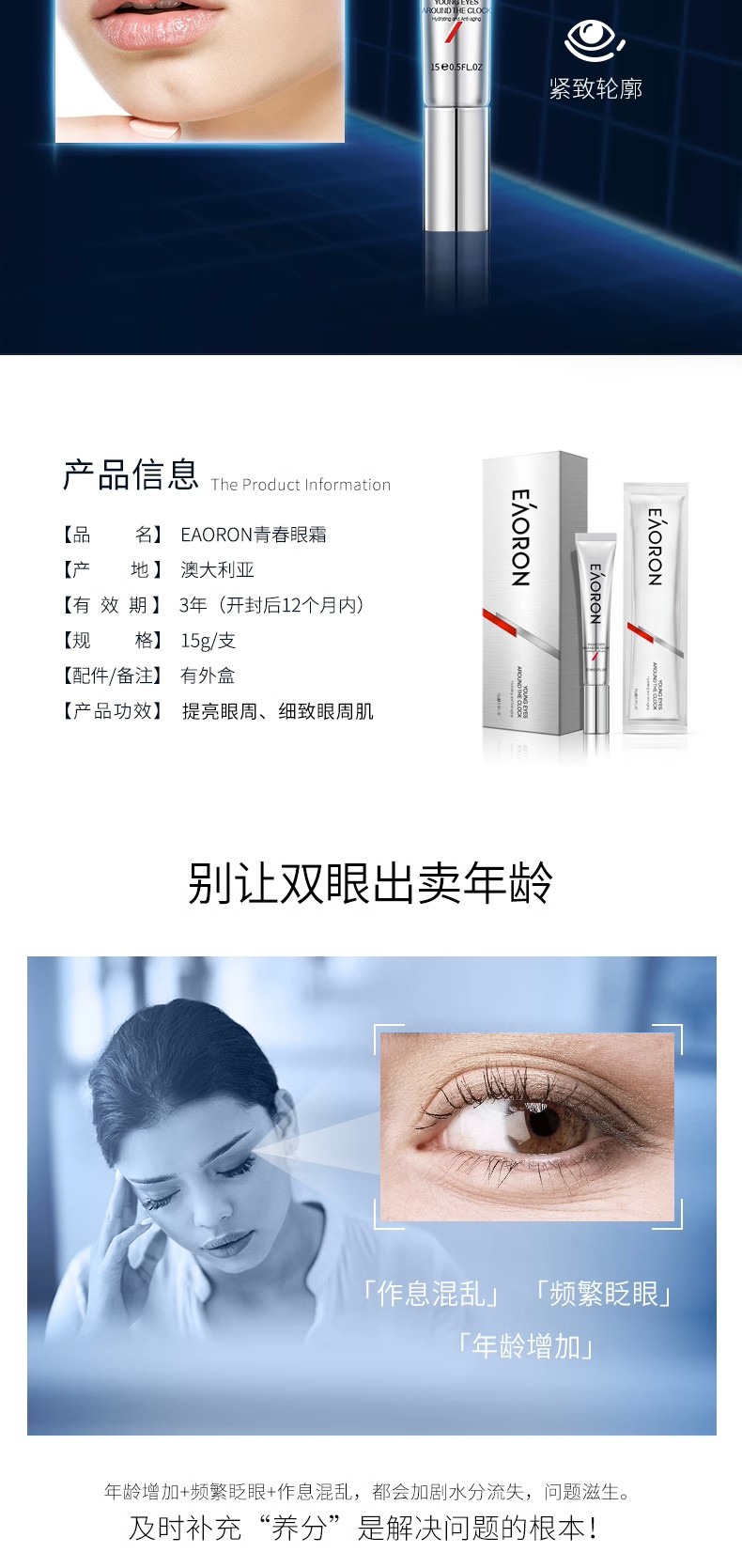 【中欧班列精选】澳洲澳容青春眼霜 原装进口 EA保湿眼部舒缓补水滋润水眼部护理15g/管 SZQR