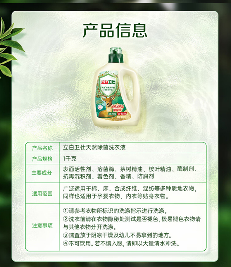 立白卫仕天然除菌洗衣液 1kg单瓶
