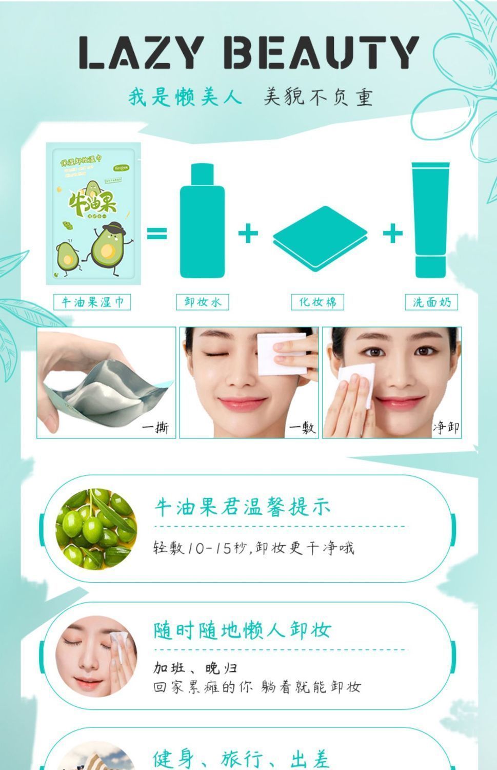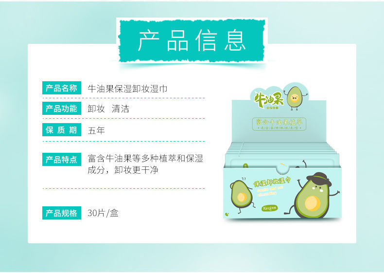 可绮牛油果卸妆湿巾便携 单片装一次性卸妆用脸部温和无刺激深层清洁