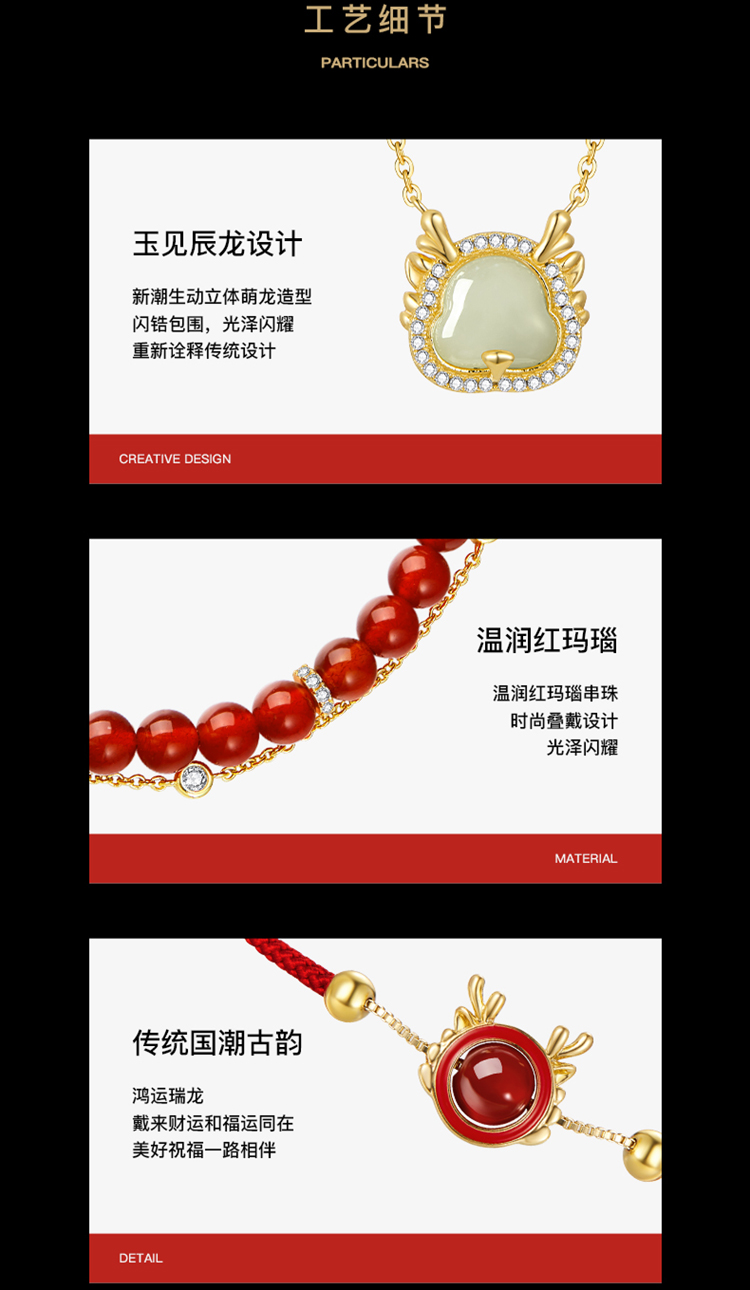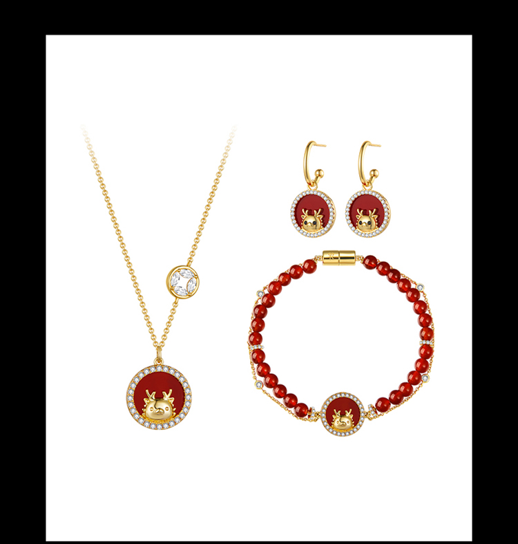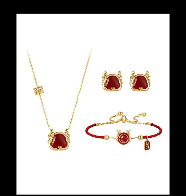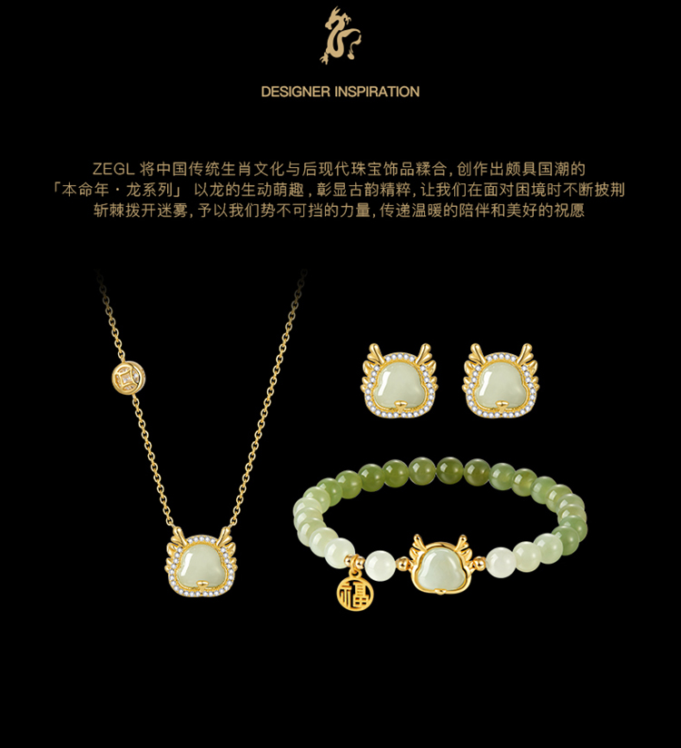 ZEGL新年礼物送女友设计师本命年龙系列福龙项链女生手链耳环套装