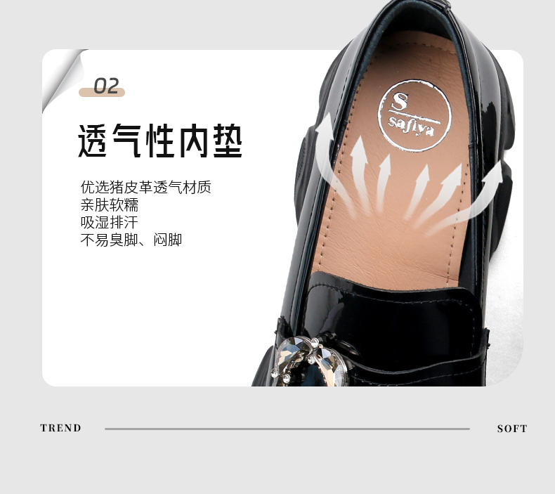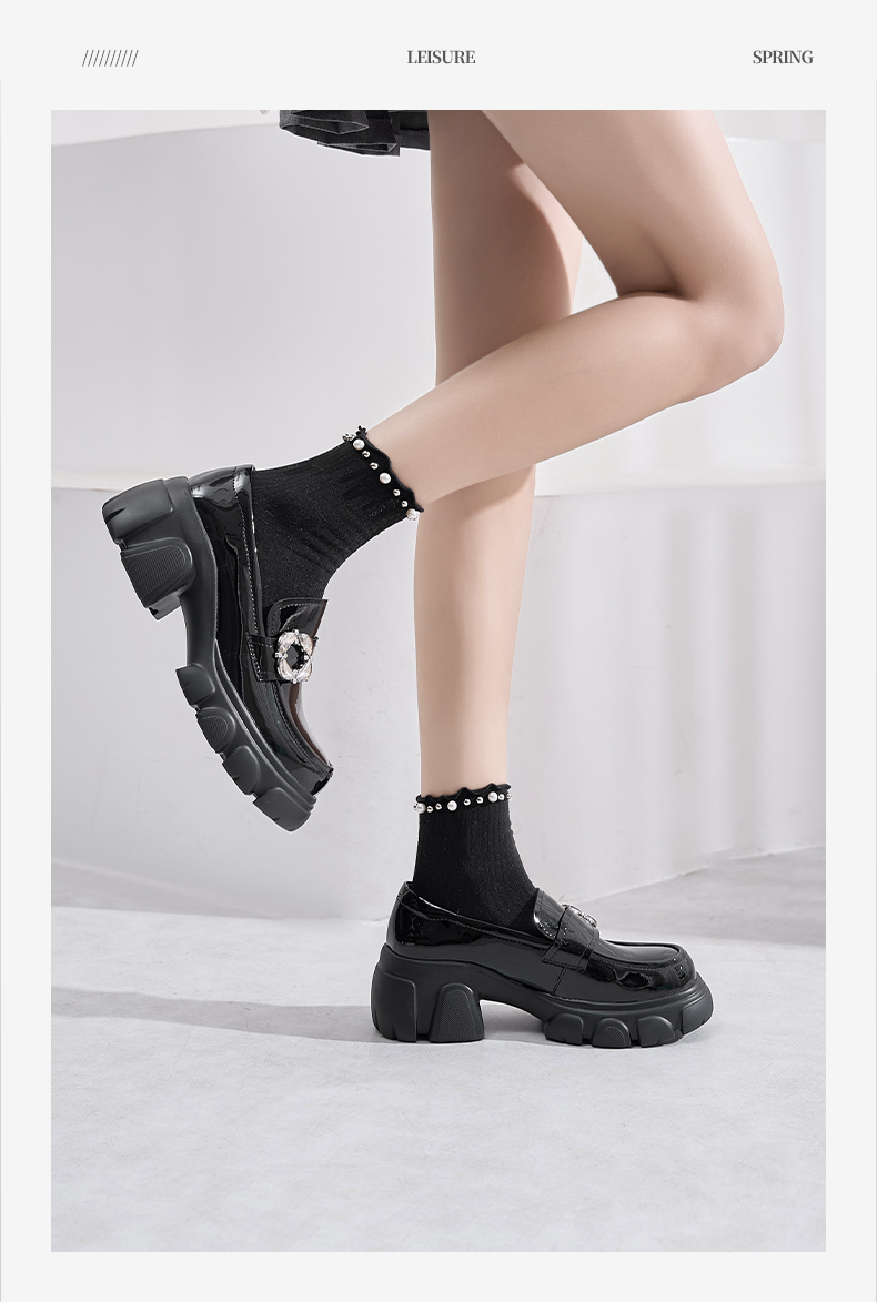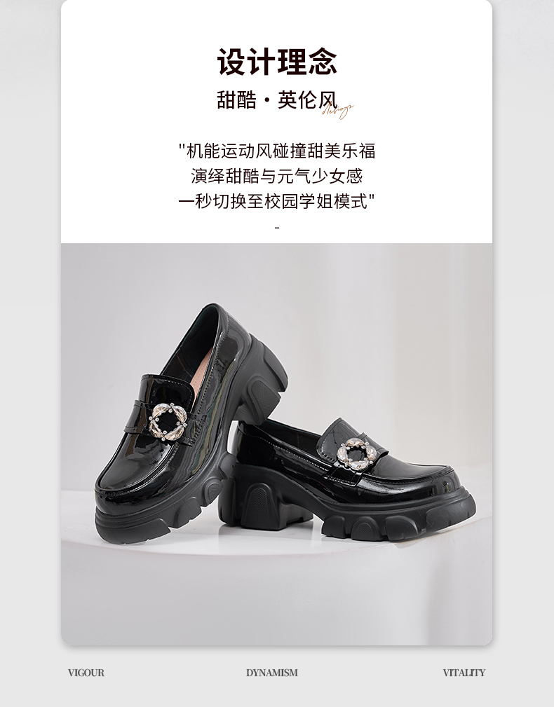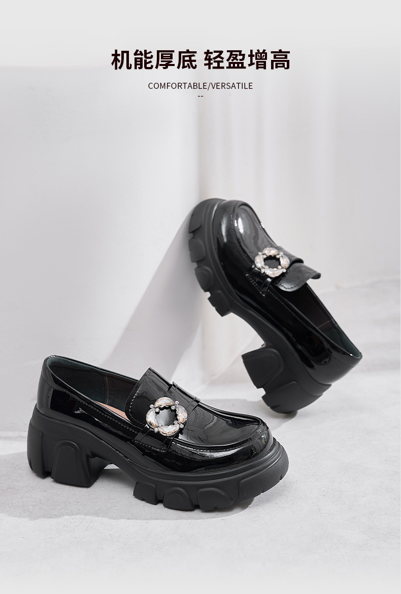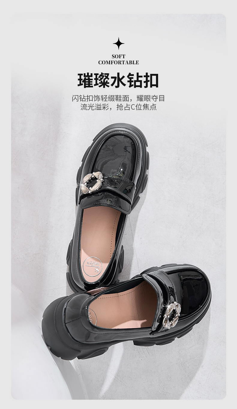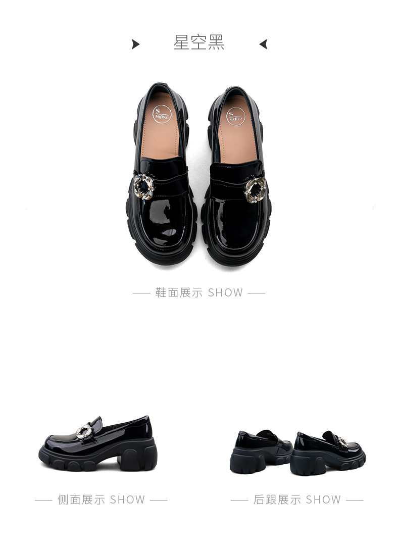 预售12天 | Safiya/索菲娅2025甜酷英伦风钻扣漆皮厚底增高乐福鞋SFD1112148