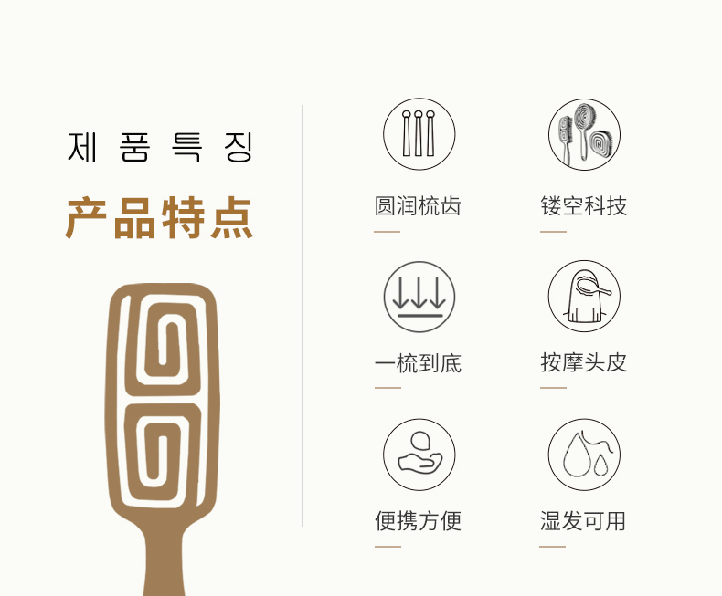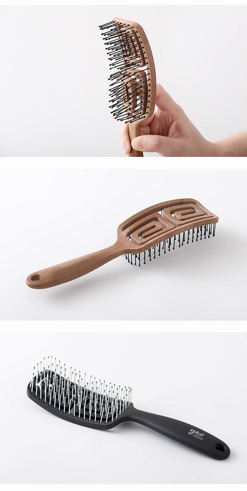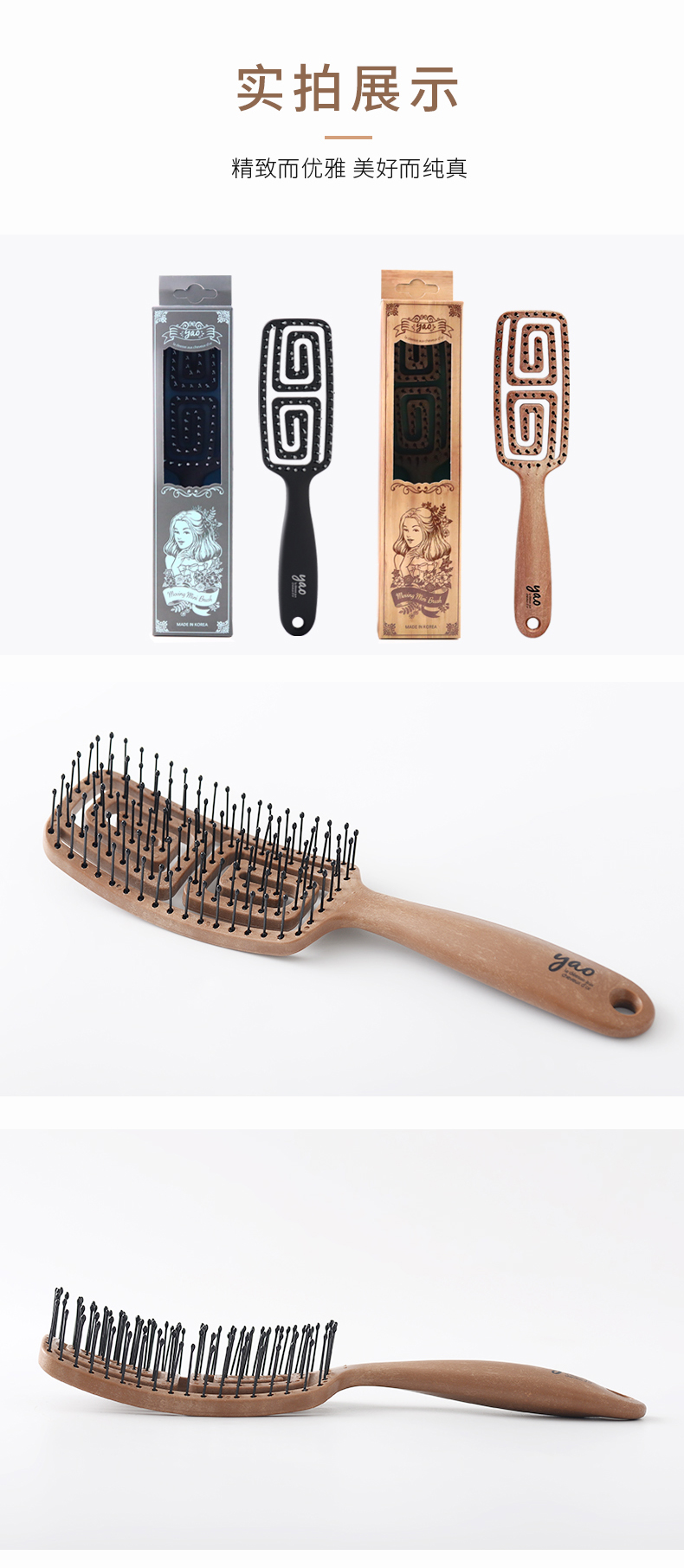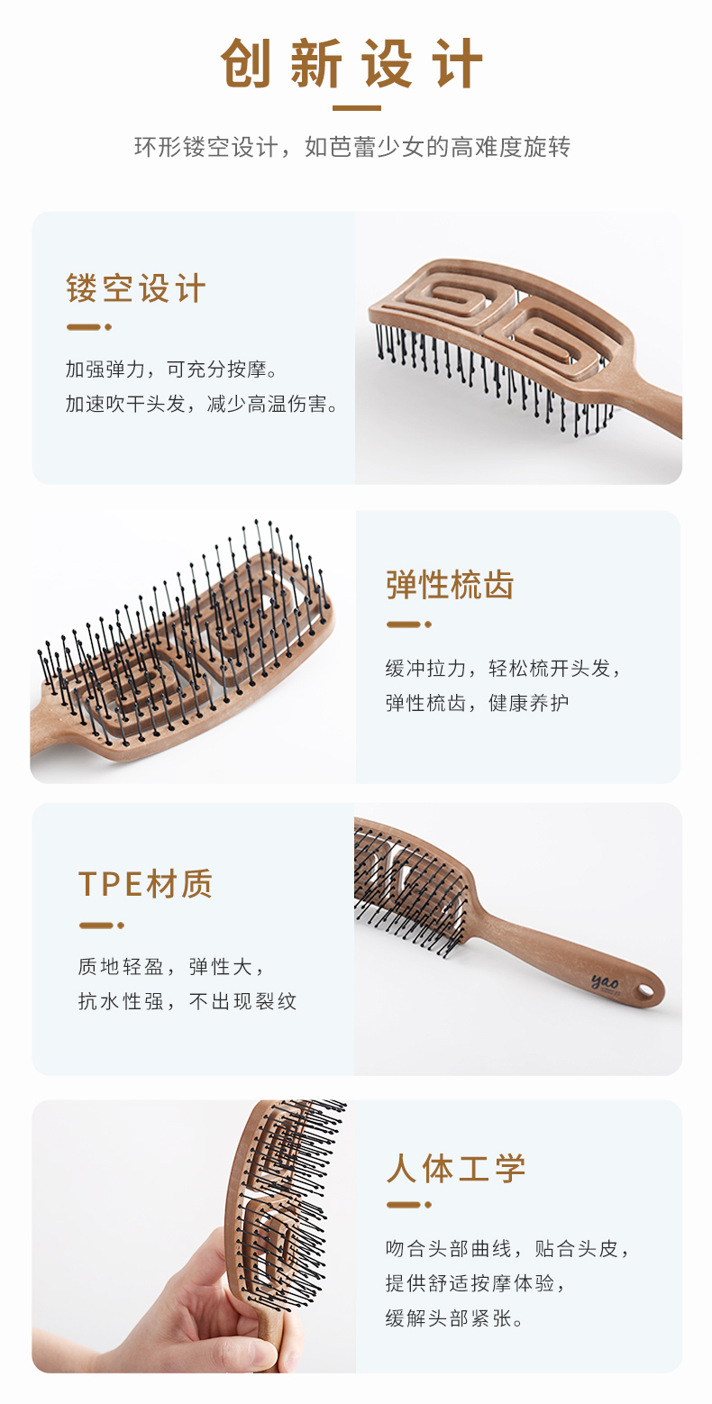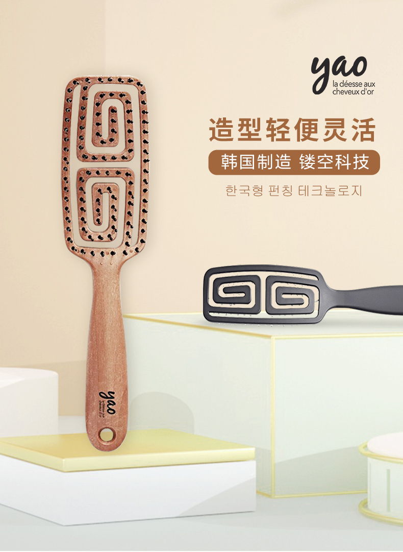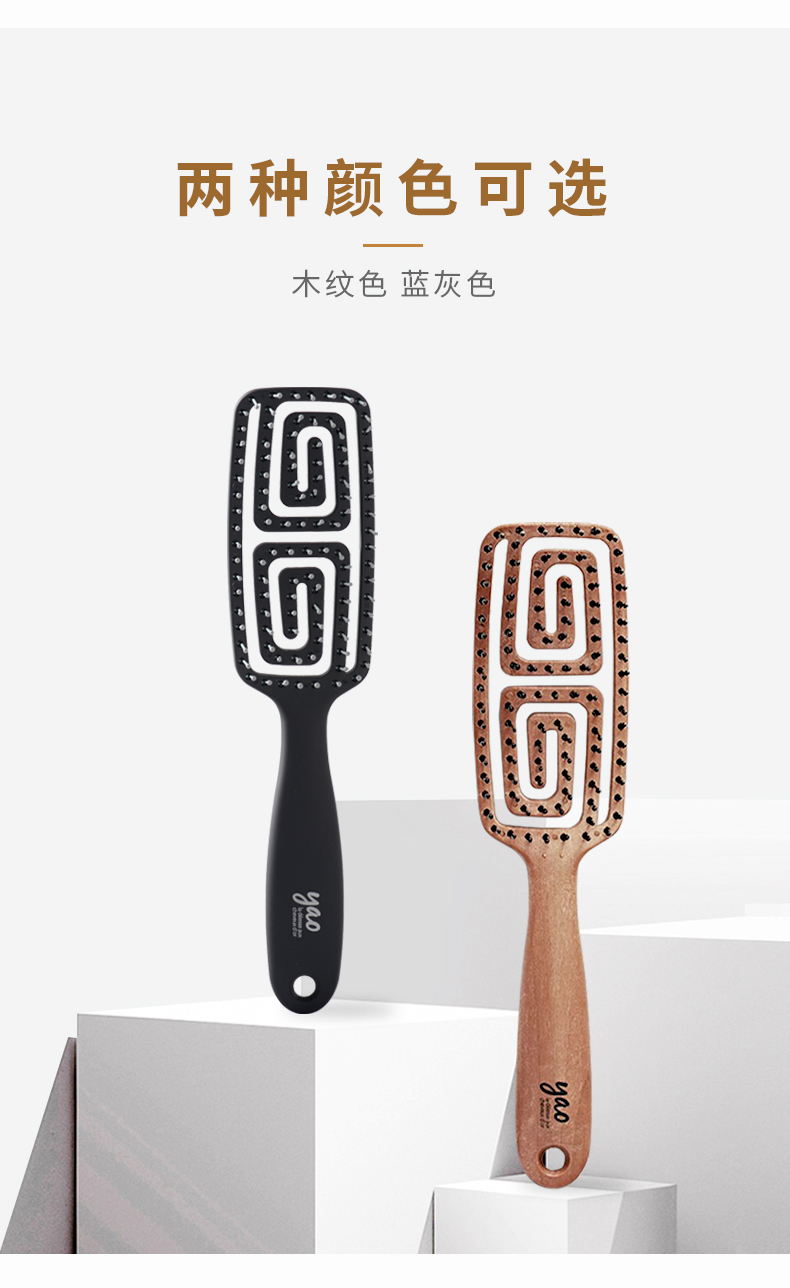 韩国yao梳子 女士男士专用气囊气垫按摩女镂空排骨梳蚊香梳 长发儿童适用可扎辫子迷宫梳礼物