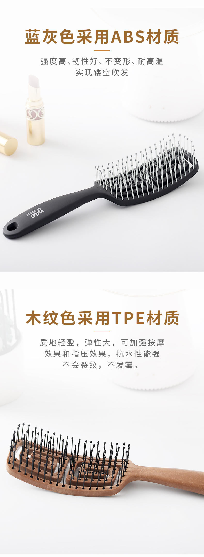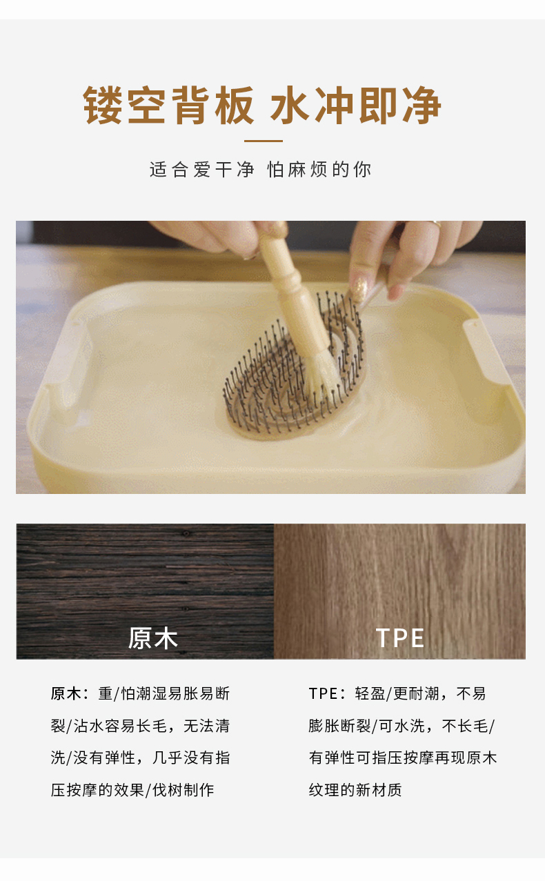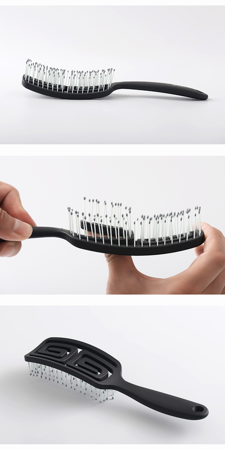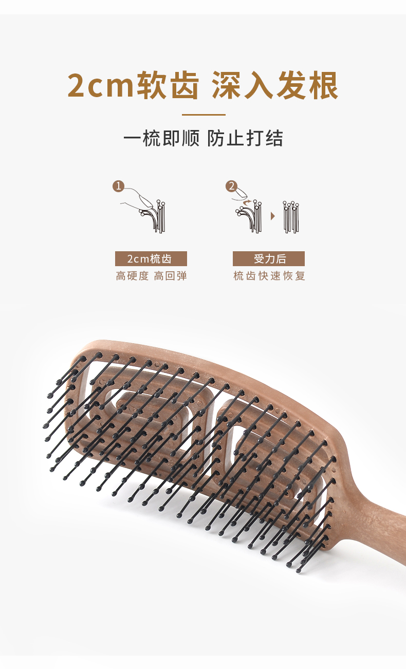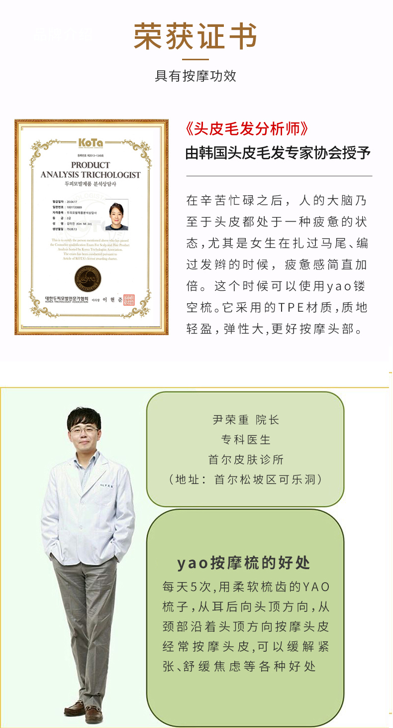 韩国yao梳子 女士男士专用气囊气垫按摩女镂空排骨梳蚊香梳 长发儿童适用可扎辫子迷宫梳礼物