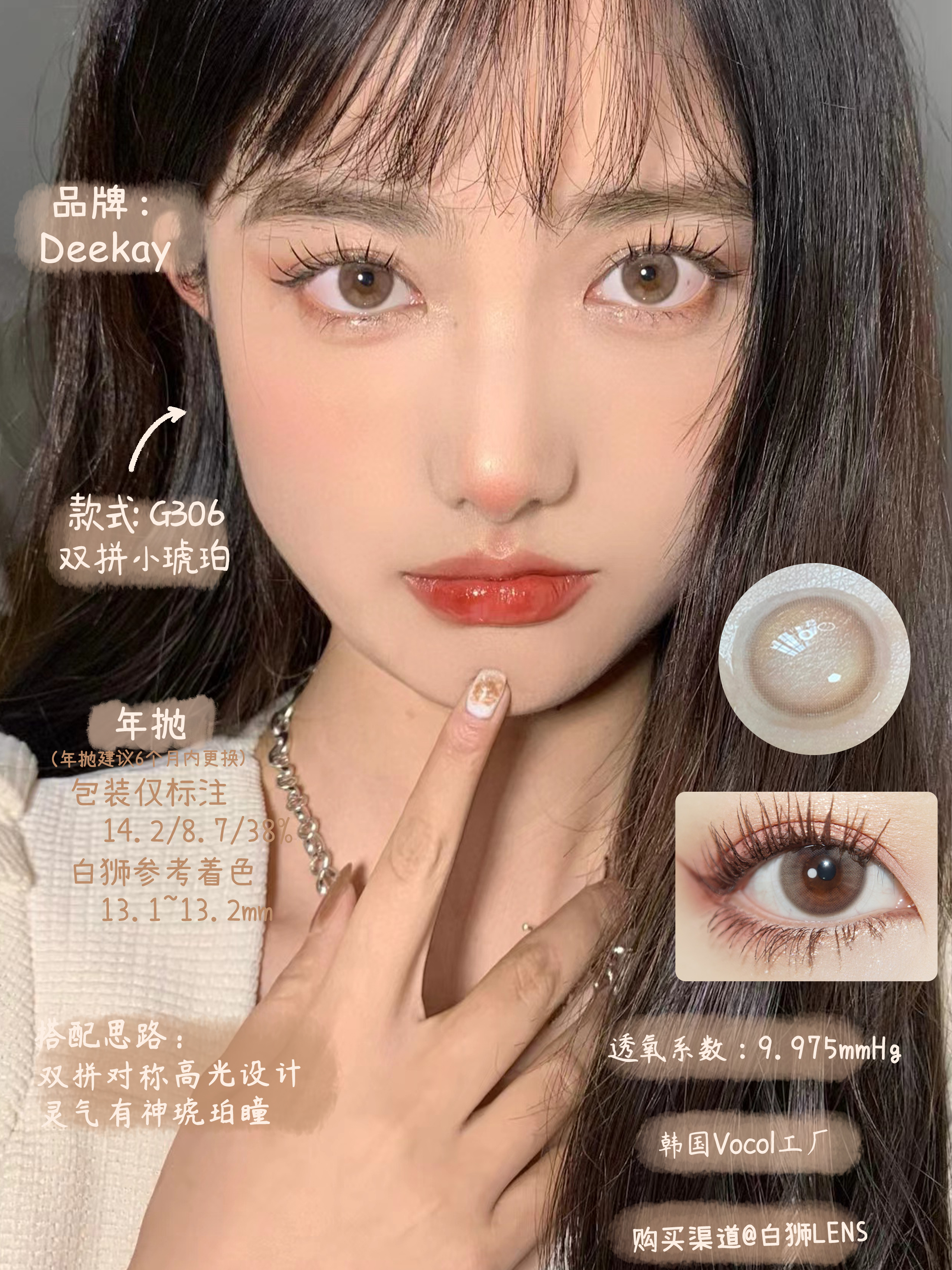 Deekay旗下 · 双拼系列|G306 双拼小琥珀 |韩国进口年抛 14.2mm小直径
