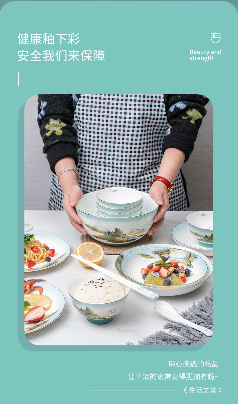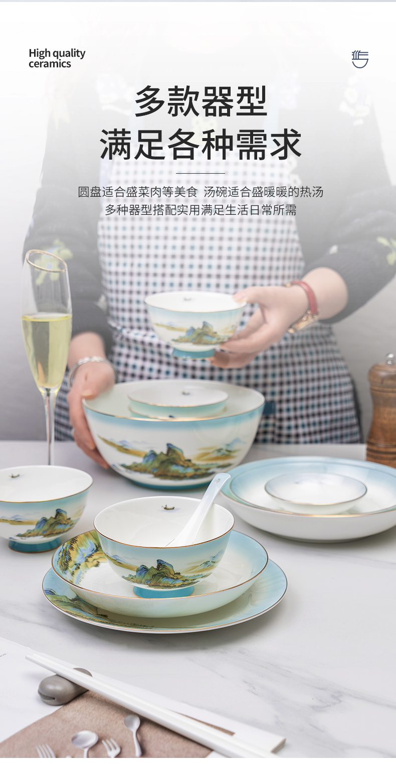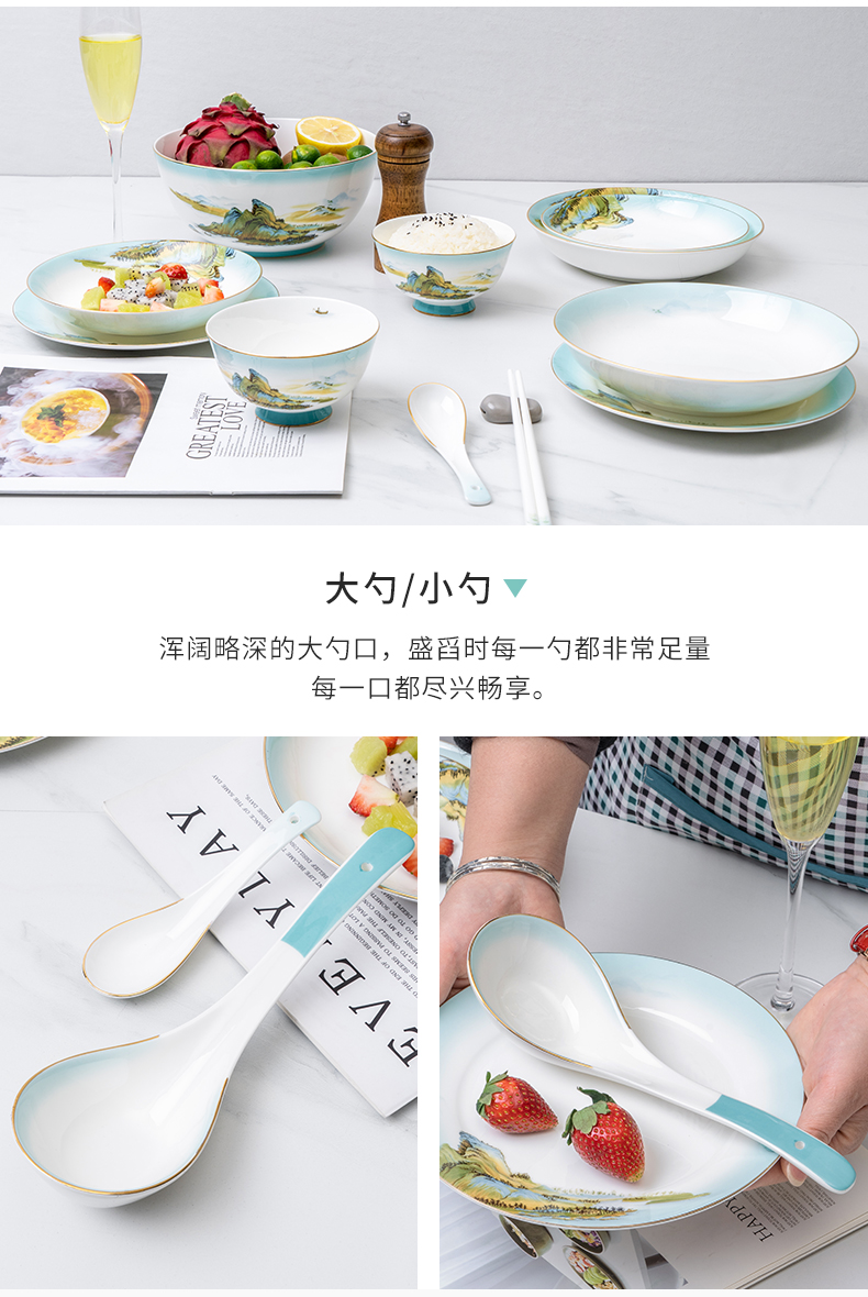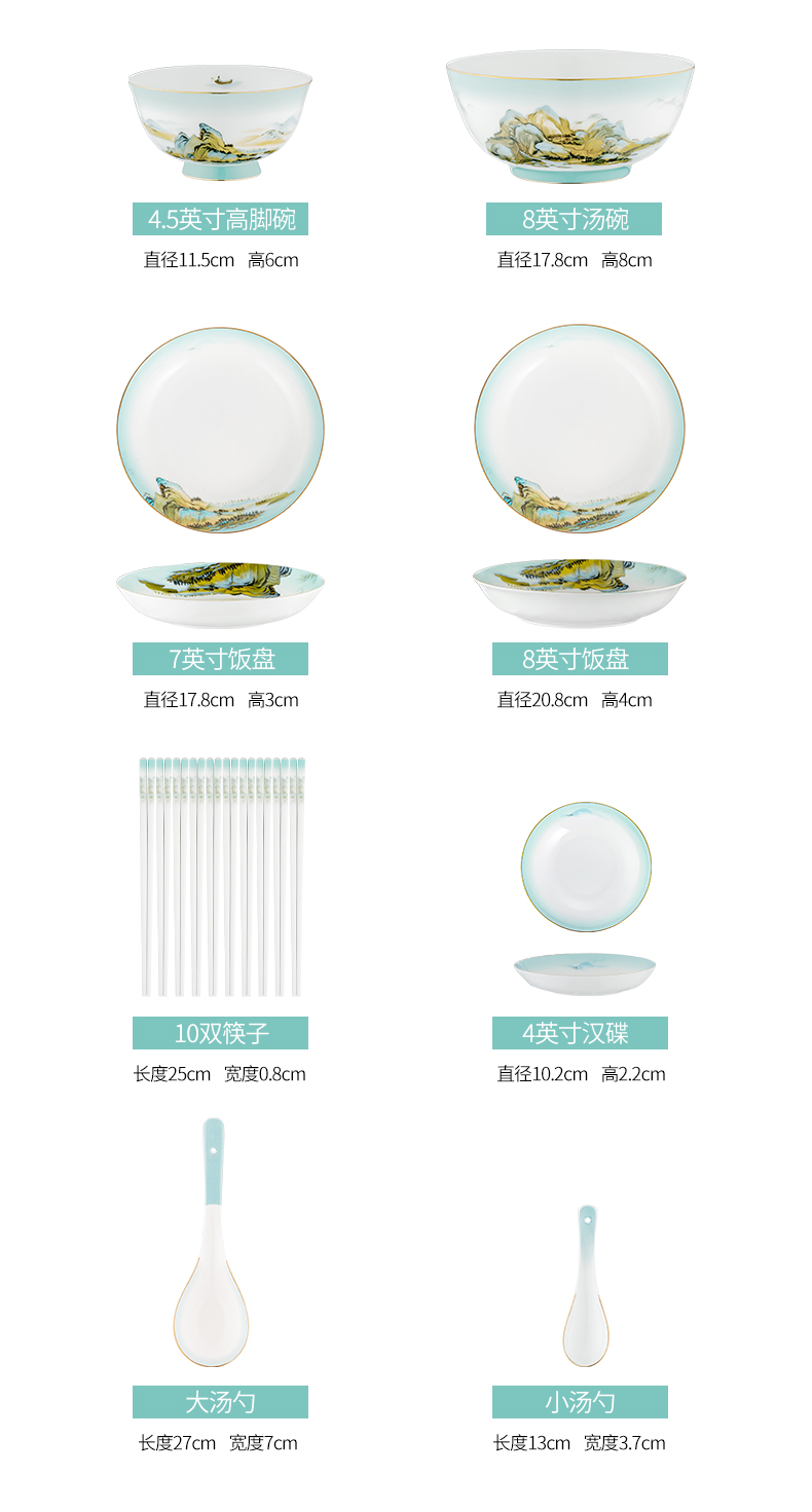Debo德铂绿水青山高档山水画风格家用正骨陶瓷餐具碗筷32头