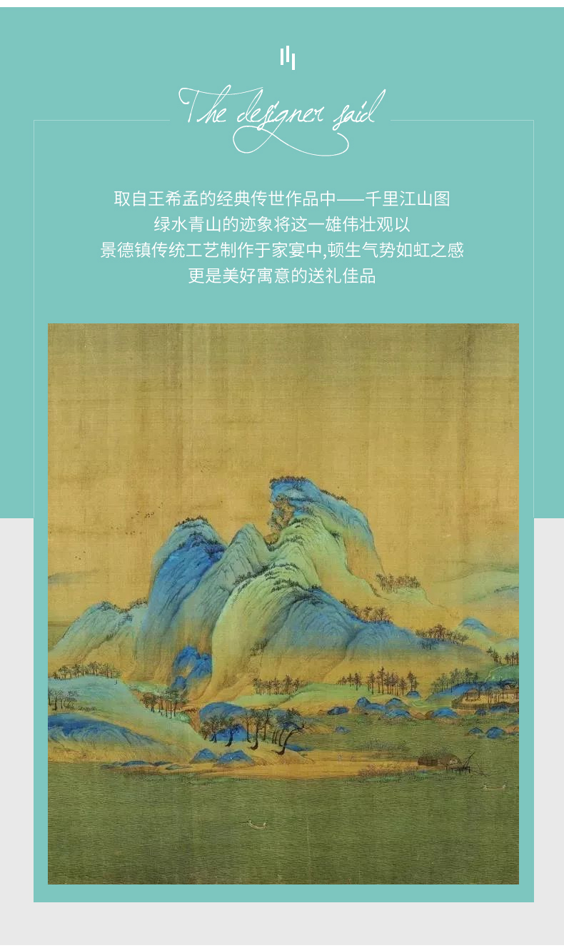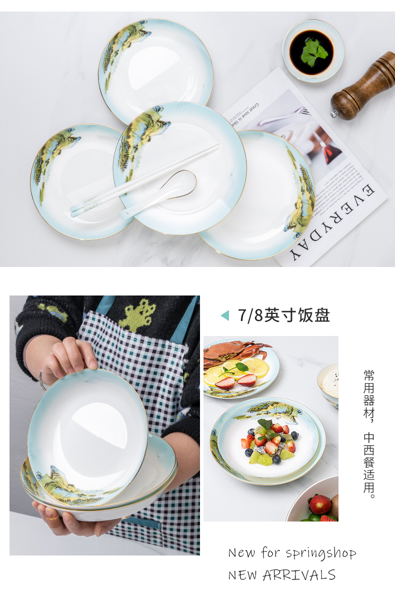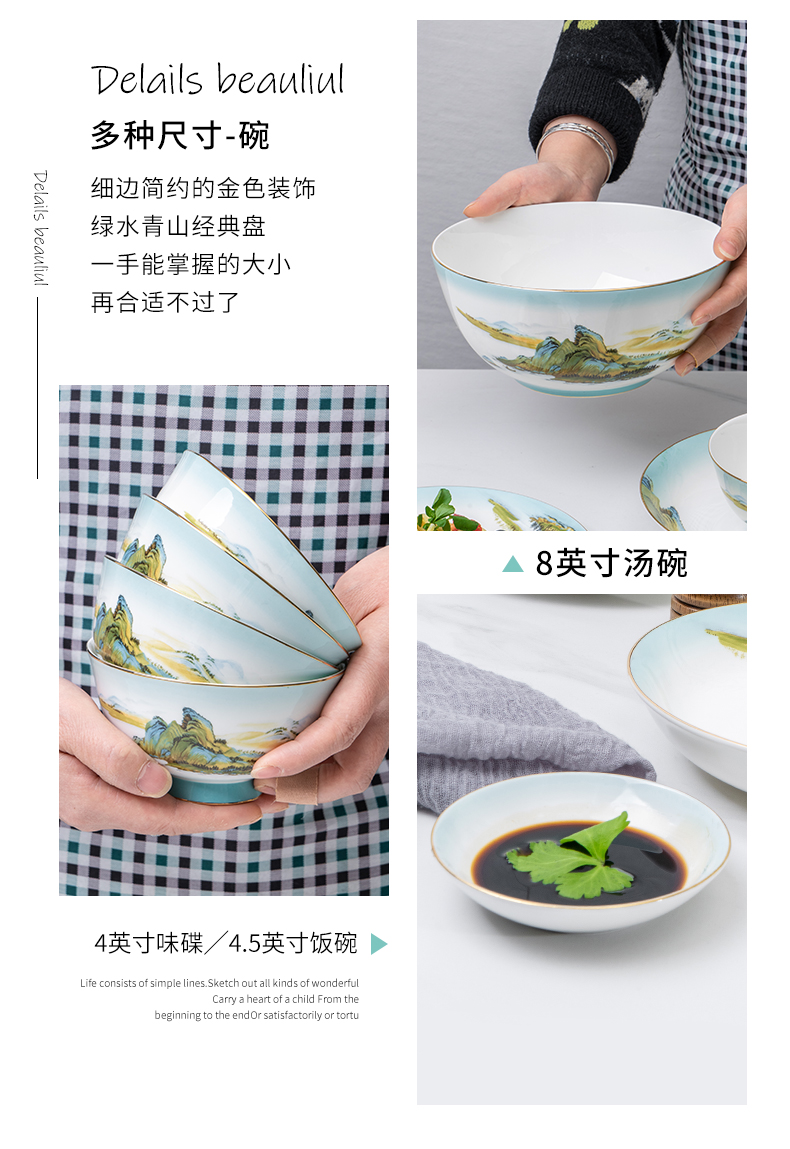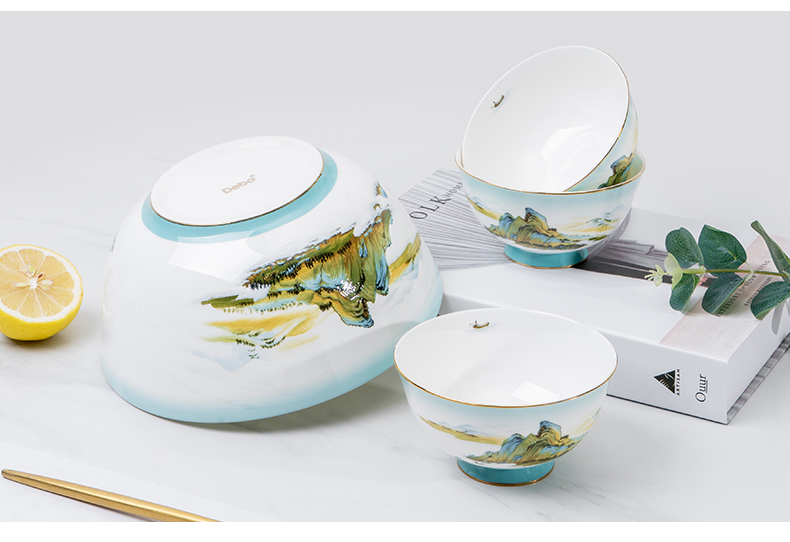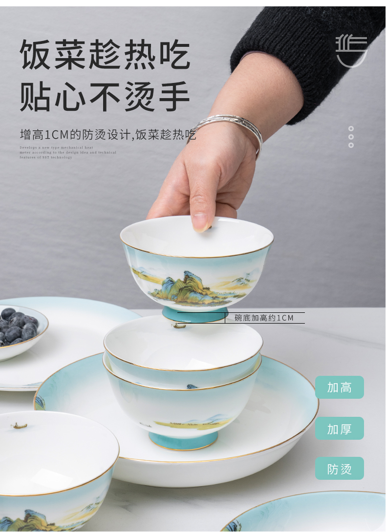 Debo德铂绿水青山高档山水画风格家用正骨陶瓷餐具碗筷32头