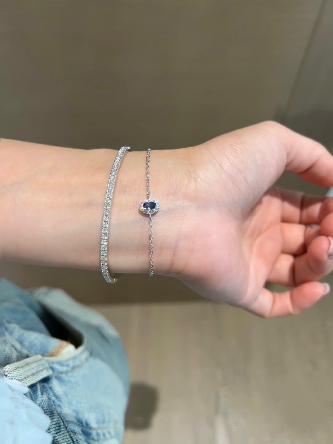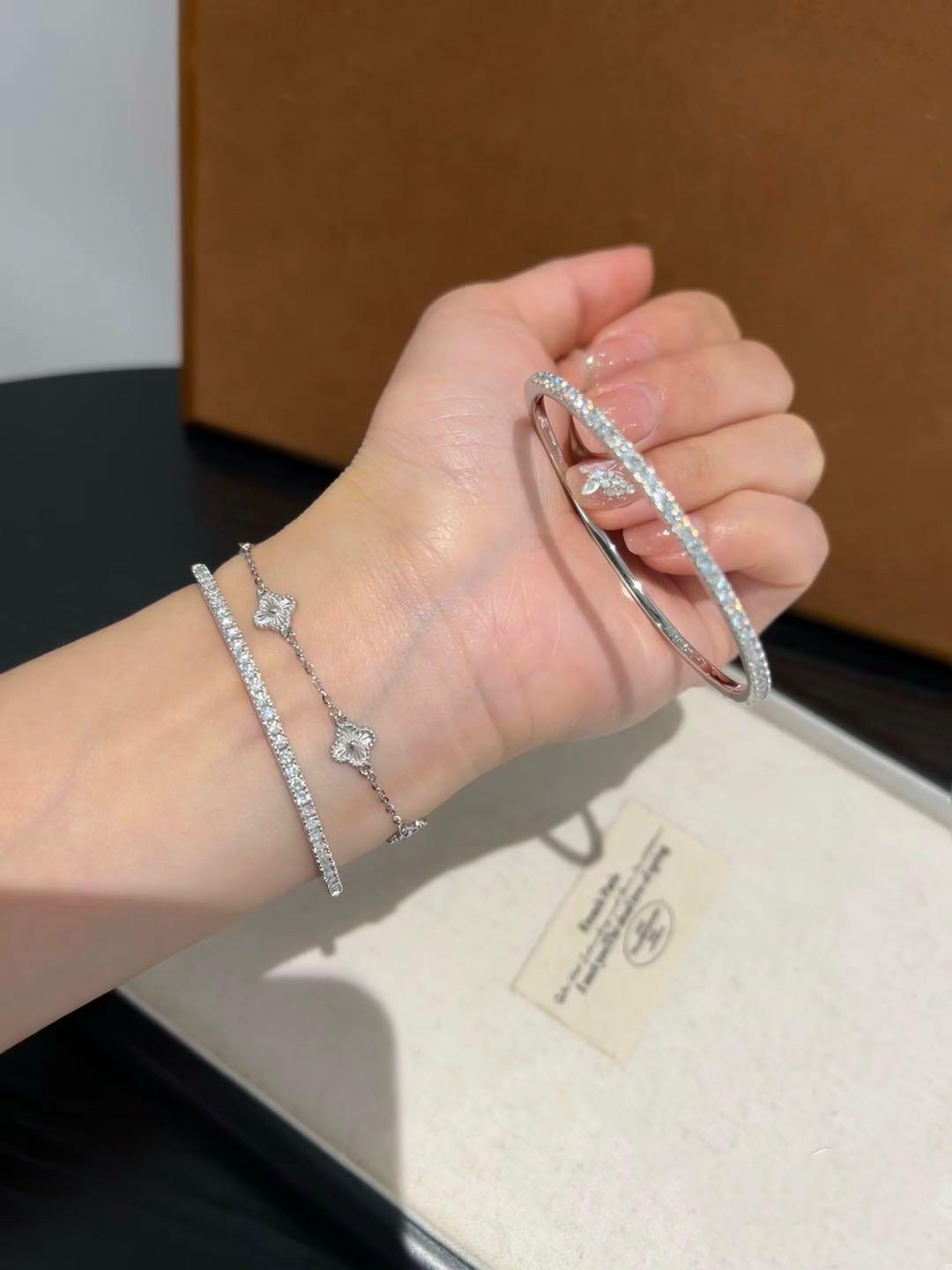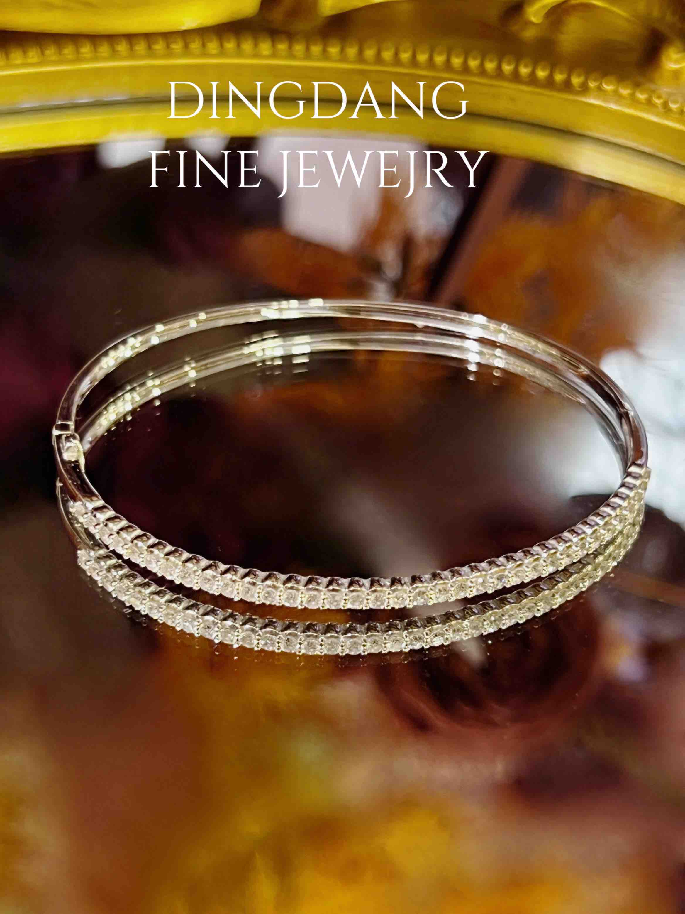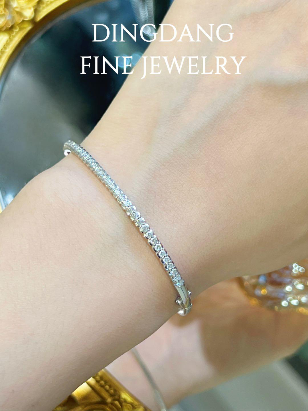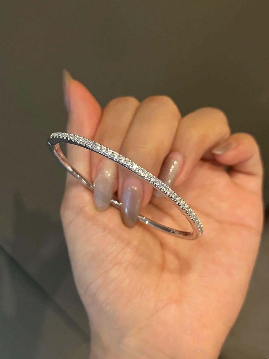主石5分天然白钻×35颗💎白金手镯,半钻半素面,干净简单 太百搭了,各种单戴叠戴都很🉑,极细镯身宛如温柔月光🌙,排钻璀璨恰似繁星✨点点,戴上它,瞬间变身精致小仙女🧚🏻♀️