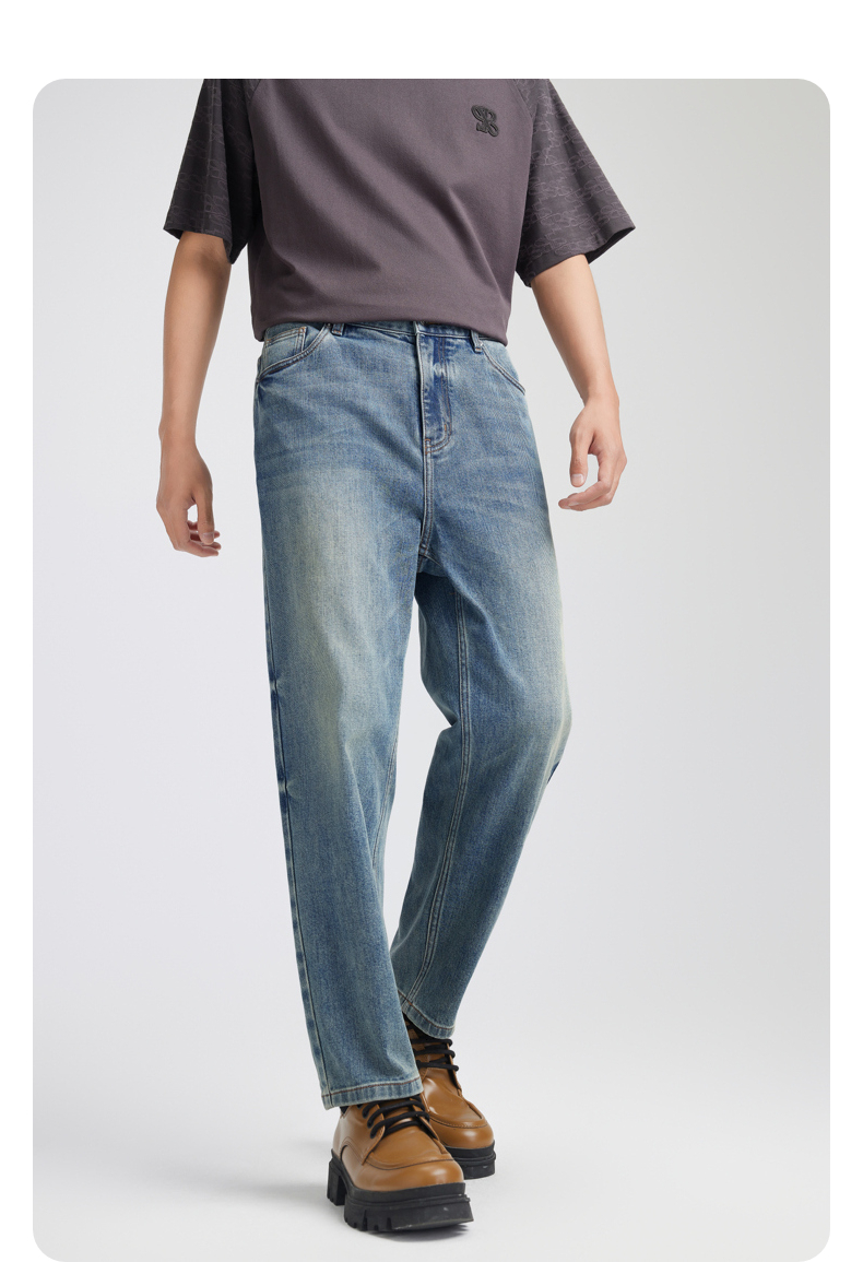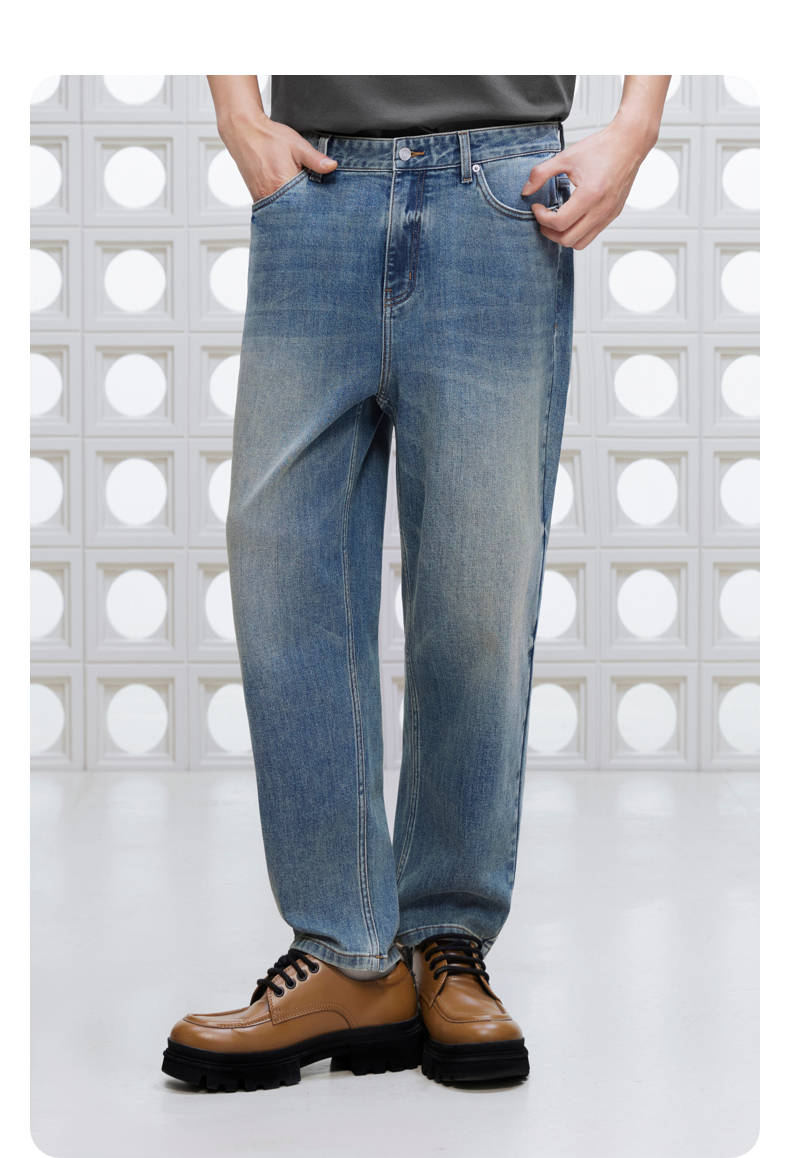 GXG男装 九分经典锥型水洗设计牛仔裤休闲裤长裤子2025夏季热卖