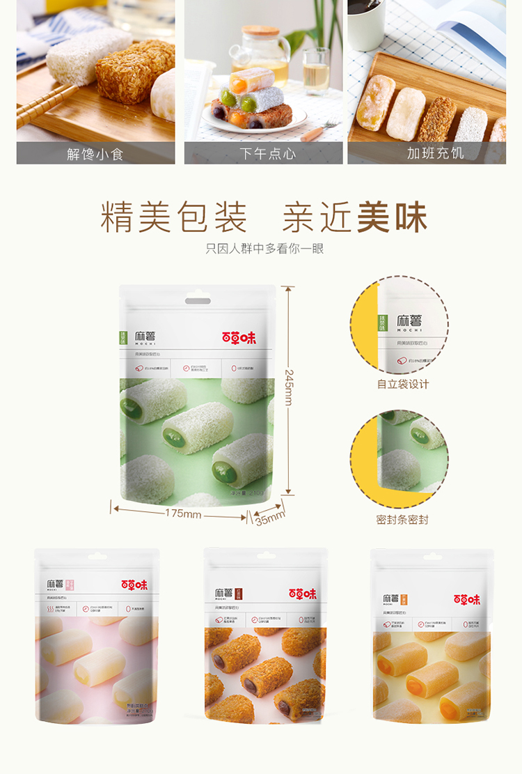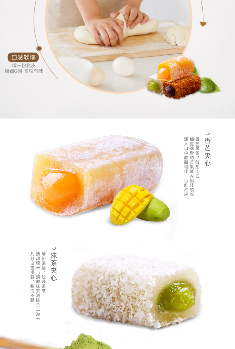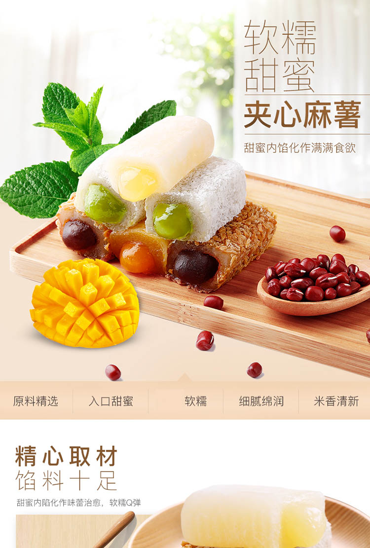 百草味 台式点心饼干糕点休闲零食特产糯米滋手撕面包 芒果味夹心麻薯210g/袋