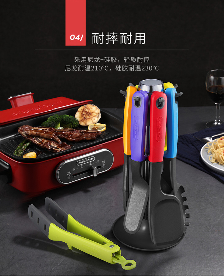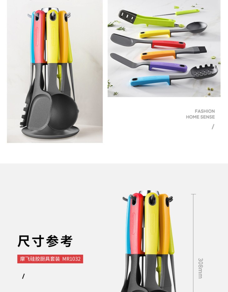 摩飞硅胶厨具七件套装 不粘锅硅胶铲耐高温炒菜铲汤勺护锅铲
