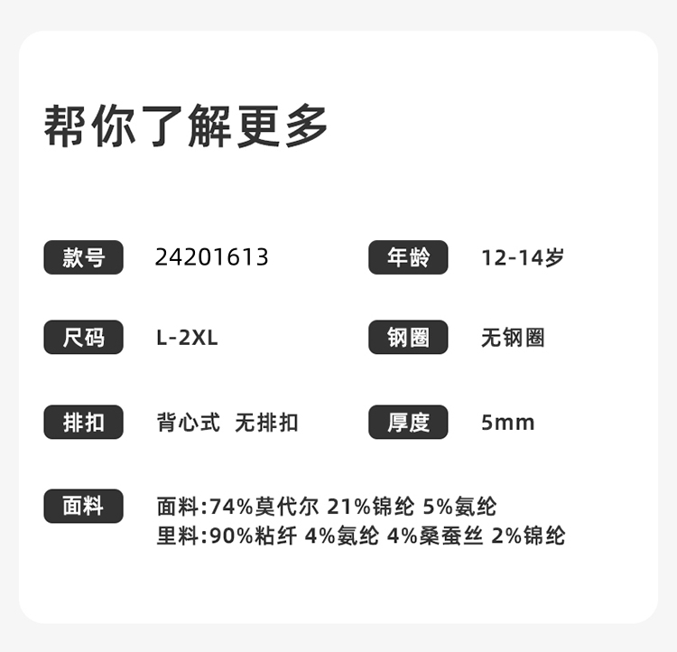 【2件盒装】熳洁儿 无缝少女围二阶段12-14岁背心式文胸商场同款24201613