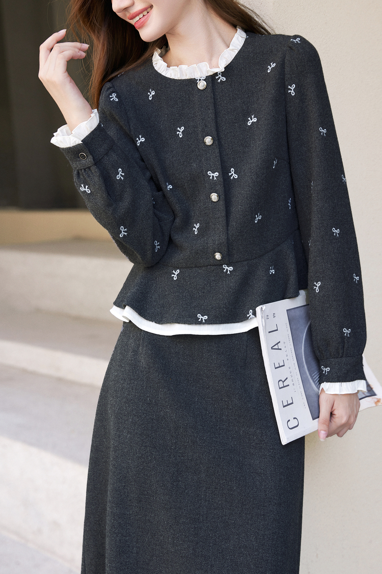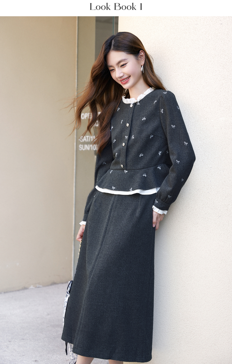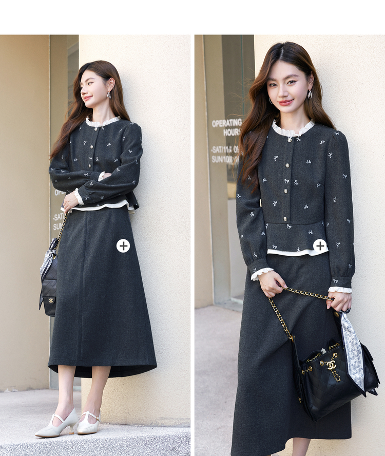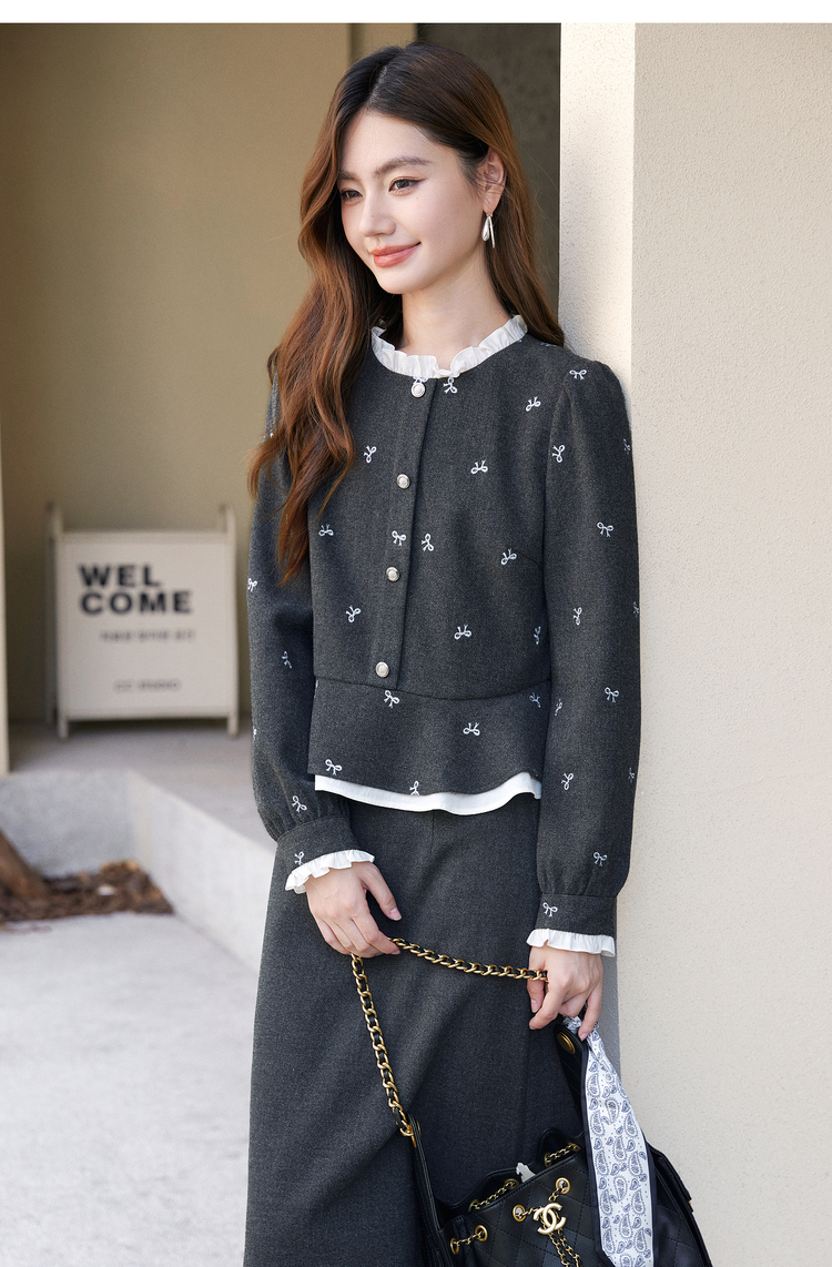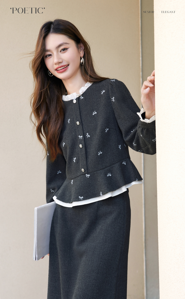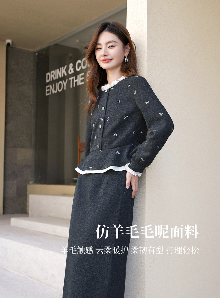 【12/03新品】熙世界韩系千金感小香风套装女2025秋冬新款毛呢上衣半身裙两件套