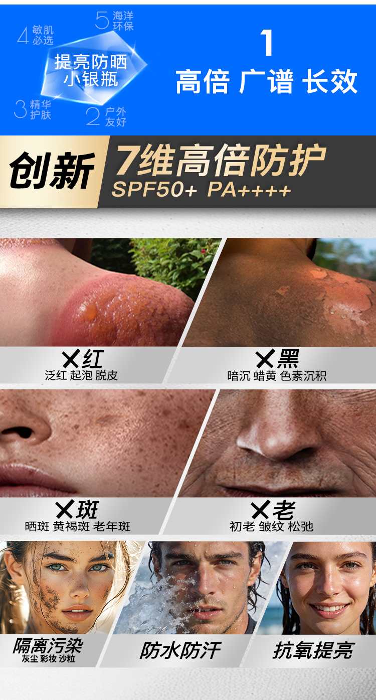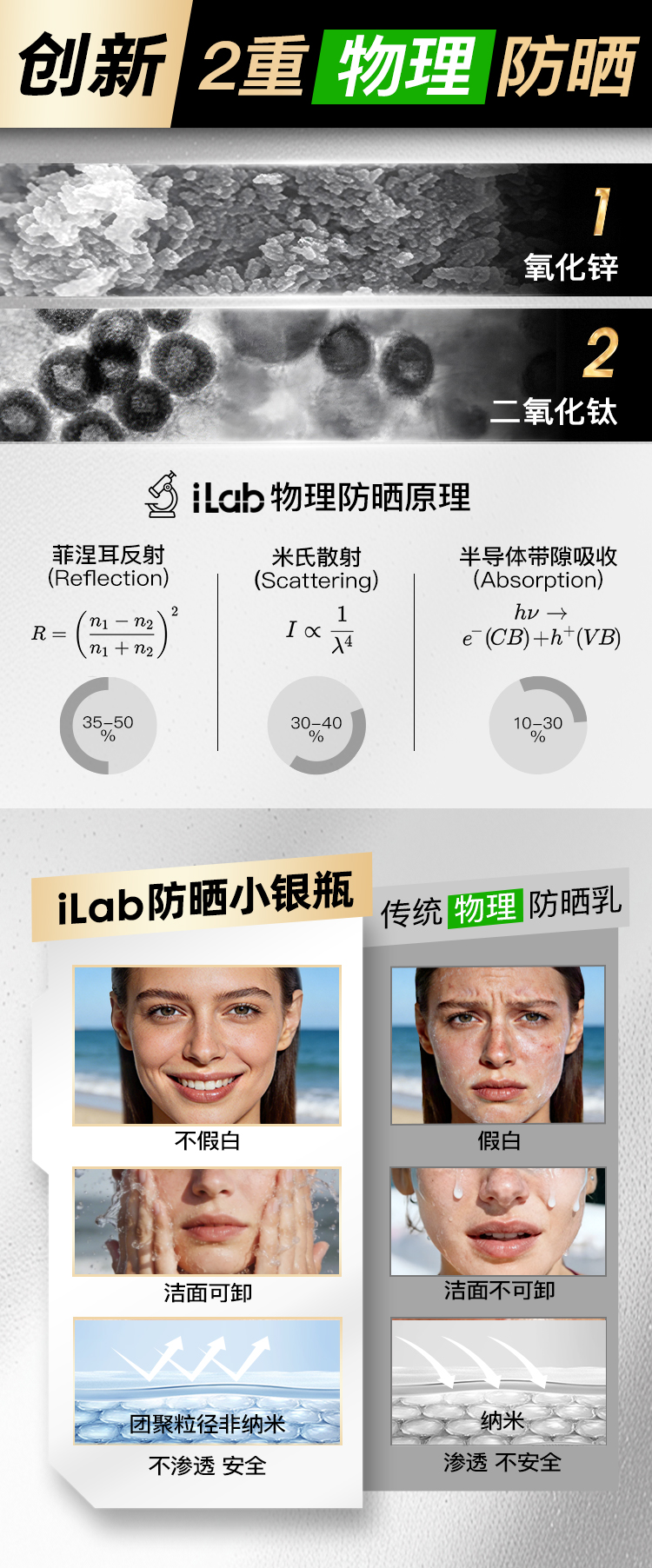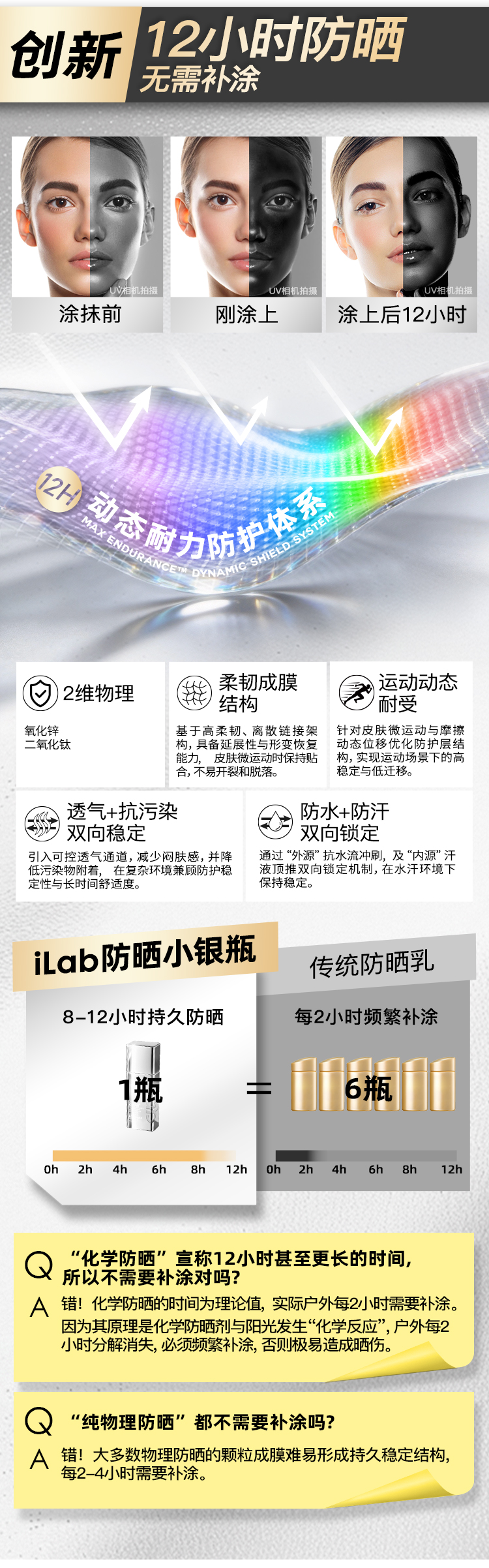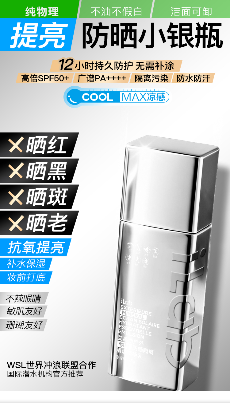 iLab艾莱博防晒小银瓶(提亮)精华乳/12小时/防水防汗/不辣眼睛35g