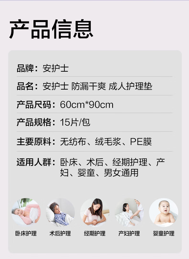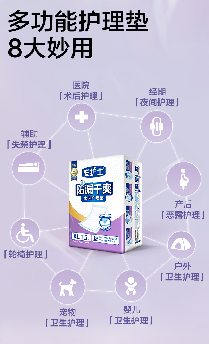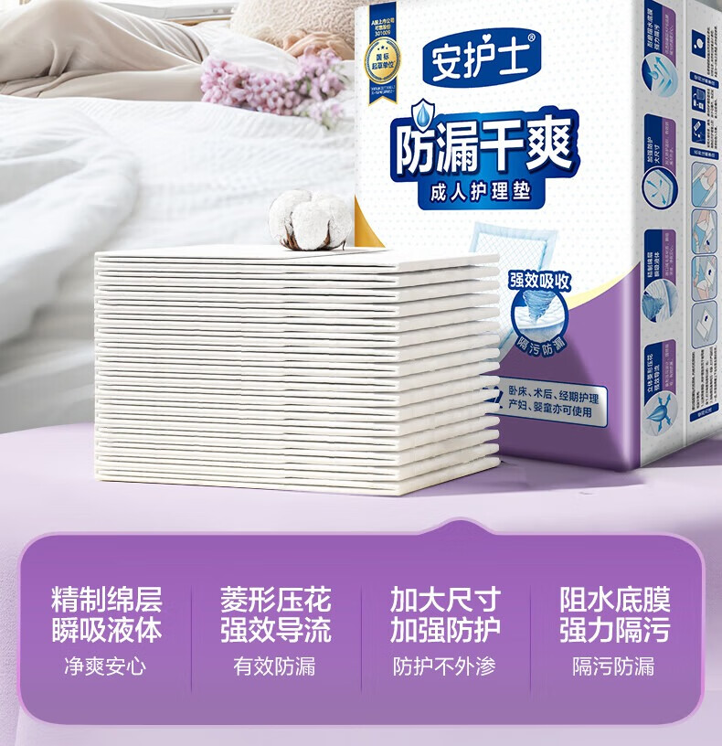 【安护士防漏干爽护理垫 整箱】 多功能隔尿垫600*900 XL码 90片/箱