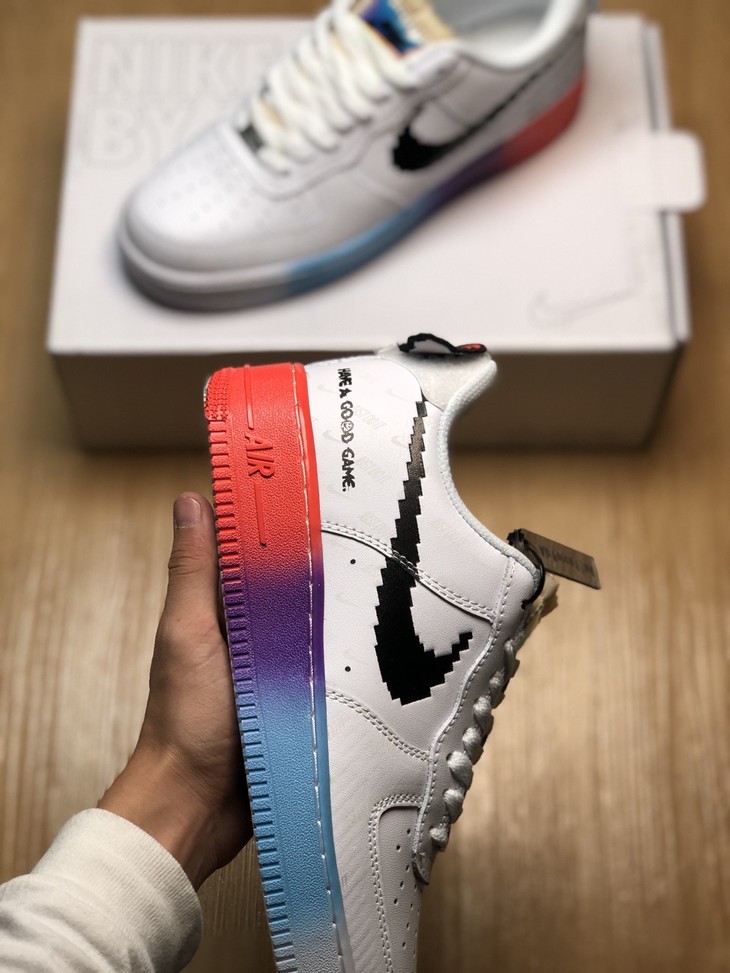 NIKE AIR FORCE 1 '07 空军一号 电玩英雄联盟皮肤休闲板鞋 印有夜光材质的 Mini Swoosh Logo 与 “JUST DO IT” 标语,在黑暗中显得格外醒目