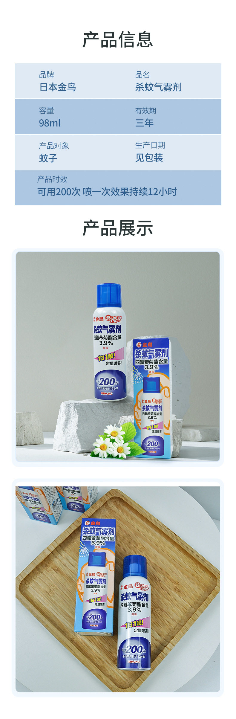 kincho日本金鸟户外家用驱蚊灭蚊杀蚊气雾剂室内防蚊蚊香液200喷
