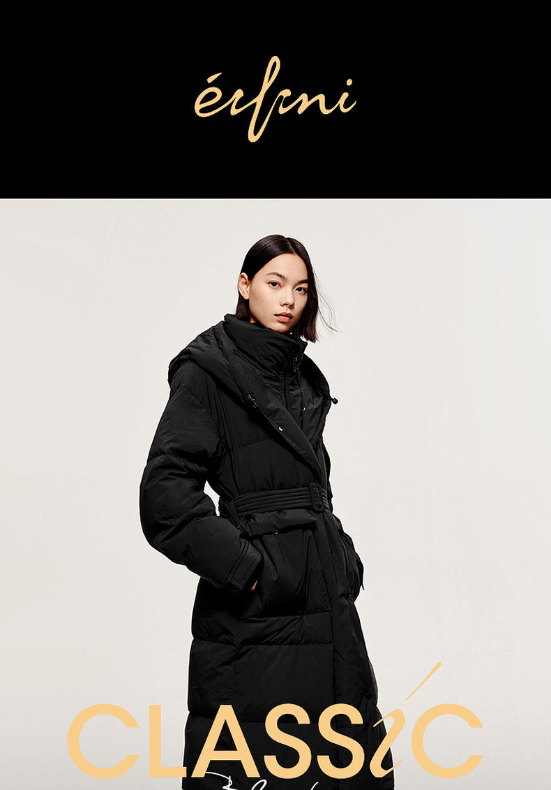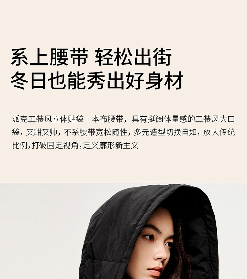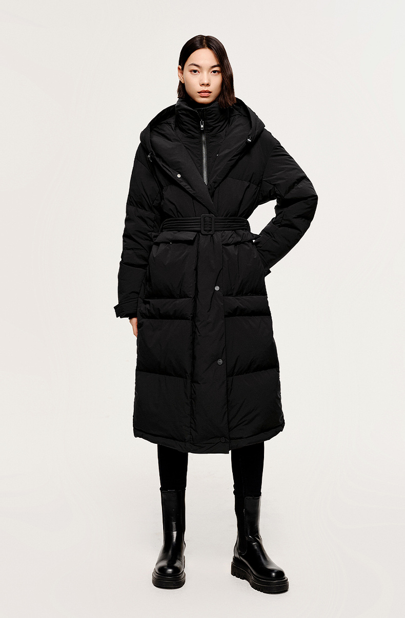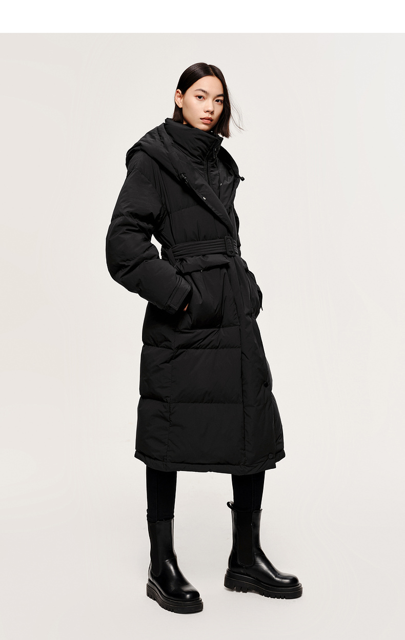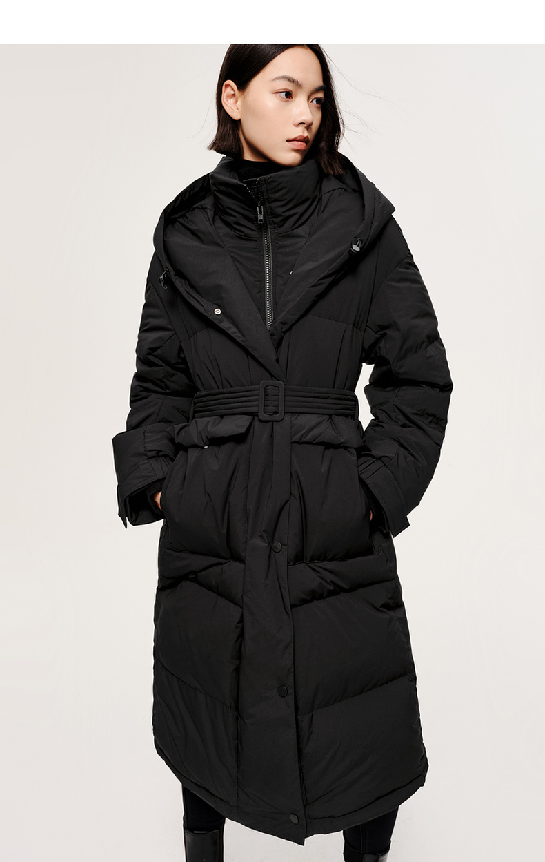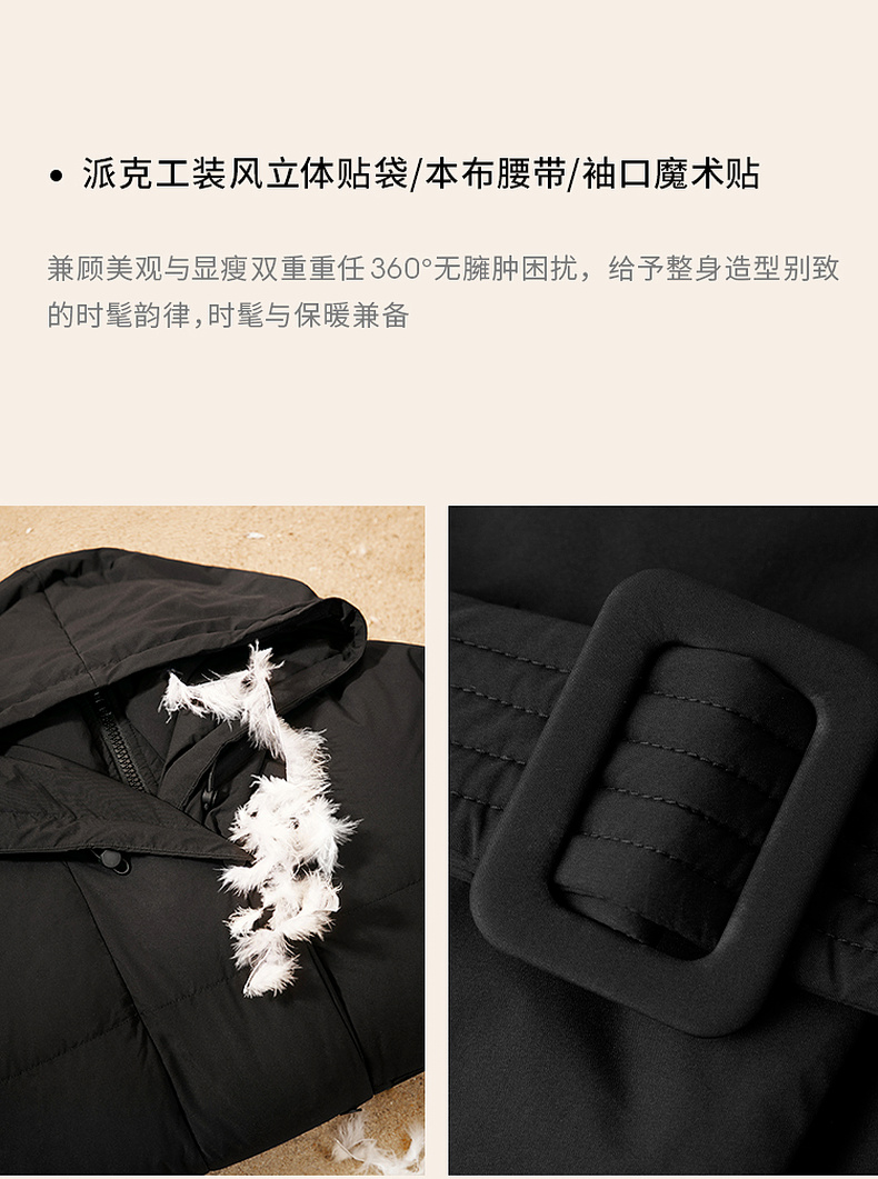 【严选】伊芙丽冬户外风腰带设计工装口袋长款羽绒服1EA980621