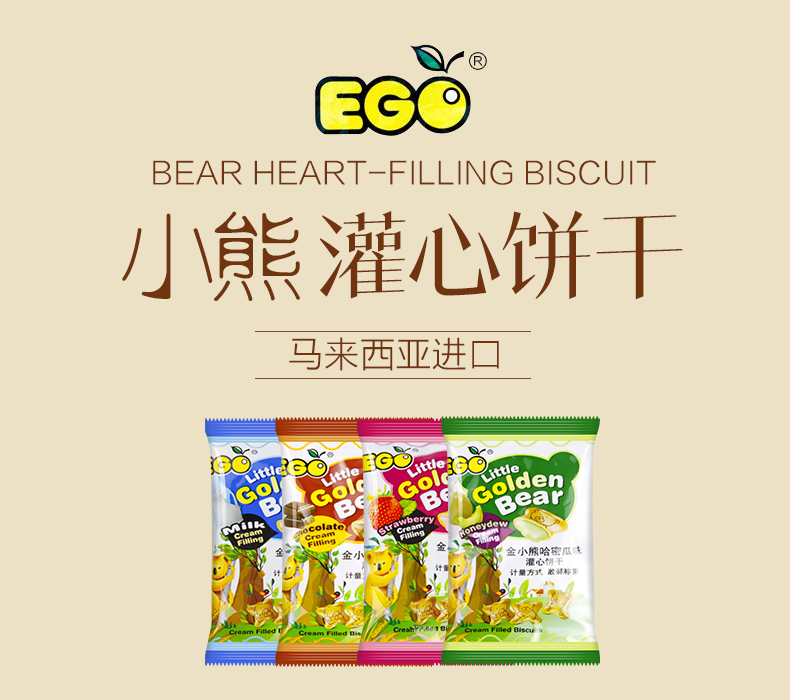 EGO金小熊夹心小饼干10g*20袋 进口网红零食约休闲食品下午茶 包邮