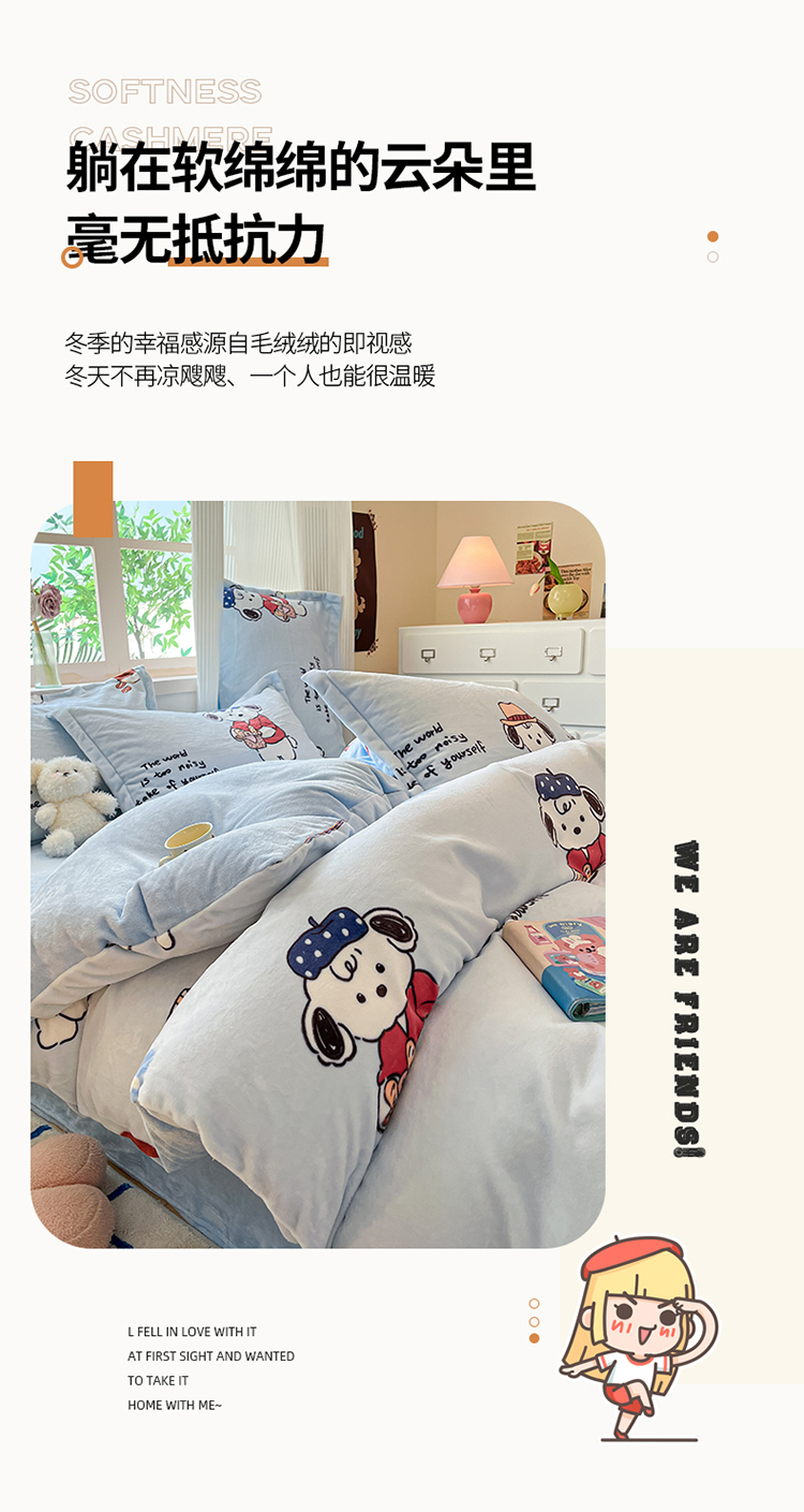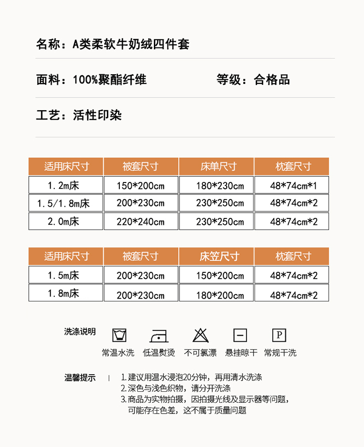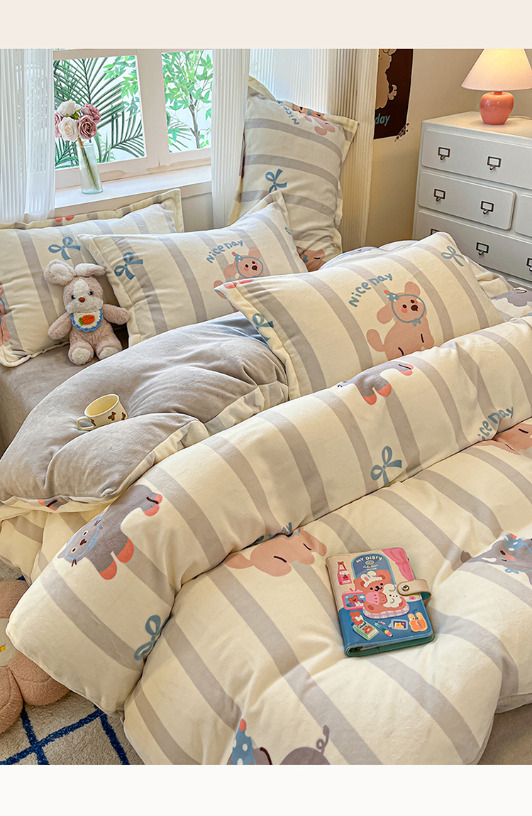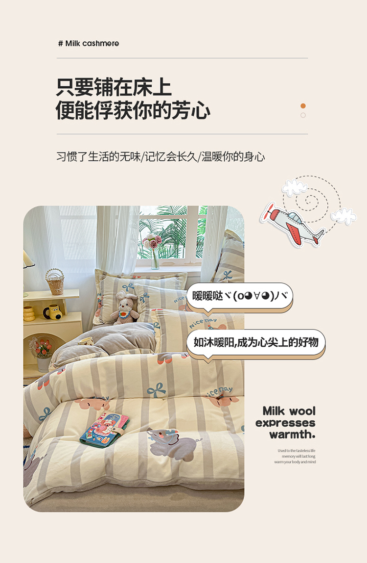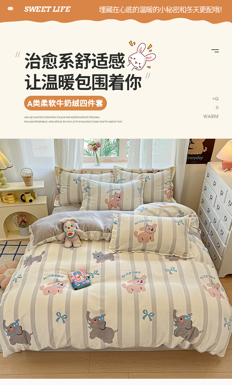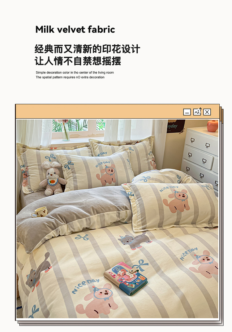 久寐牛奶绒印花四件套 200*230cm 1.5m和1.8m床通用