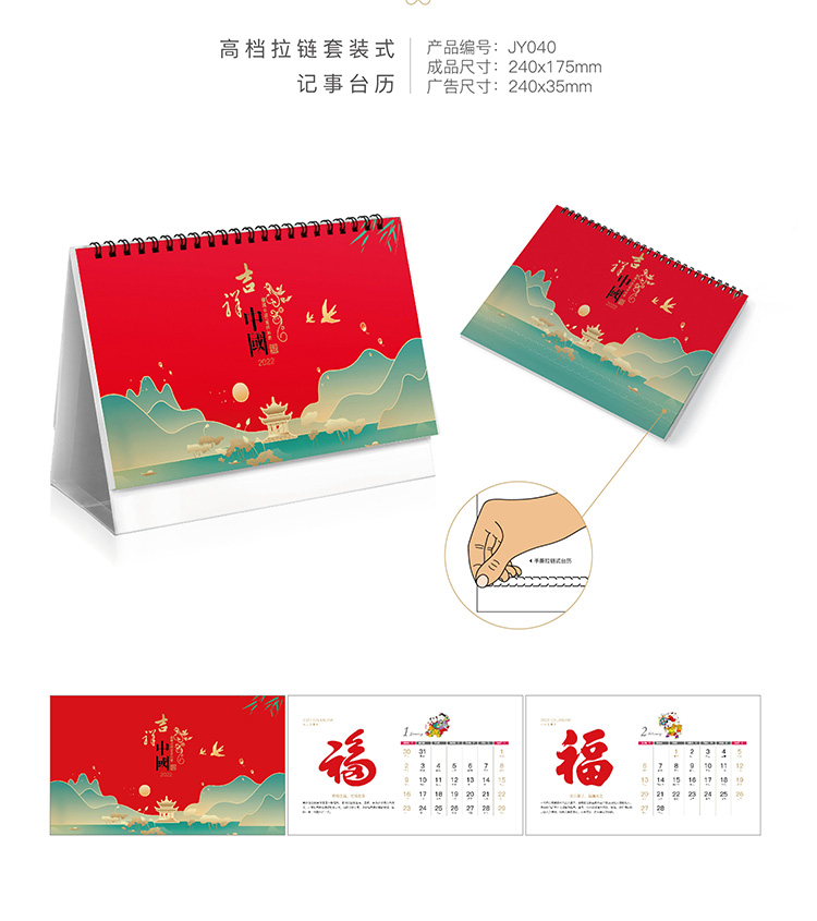 集雅月历-吉祥中国JY-22040 2022年高架拉链式十三张办公记事台历