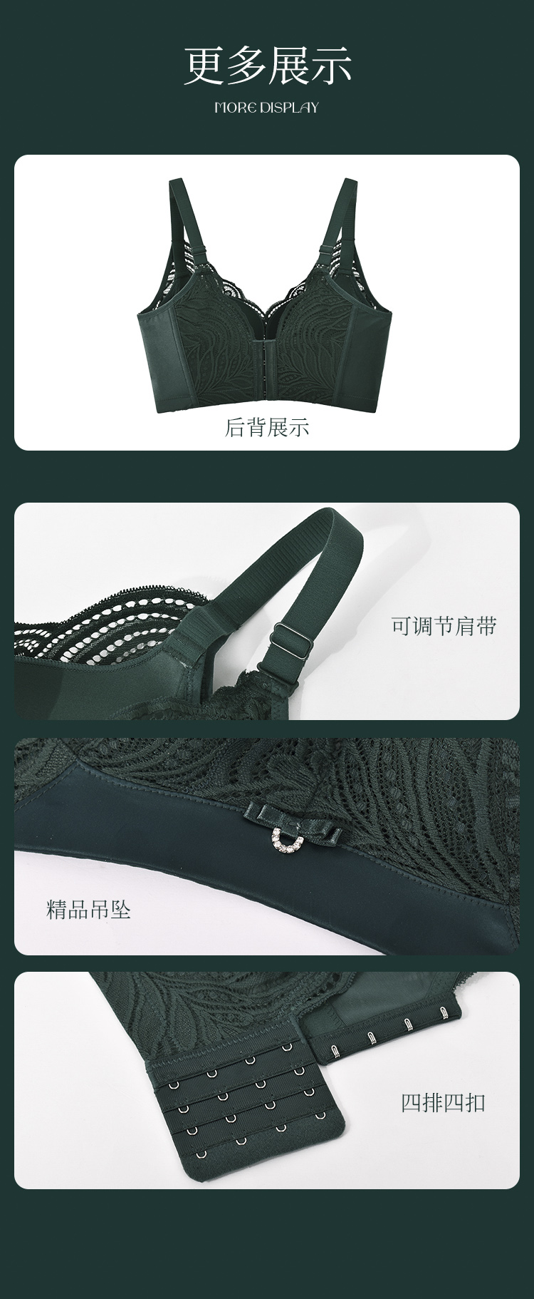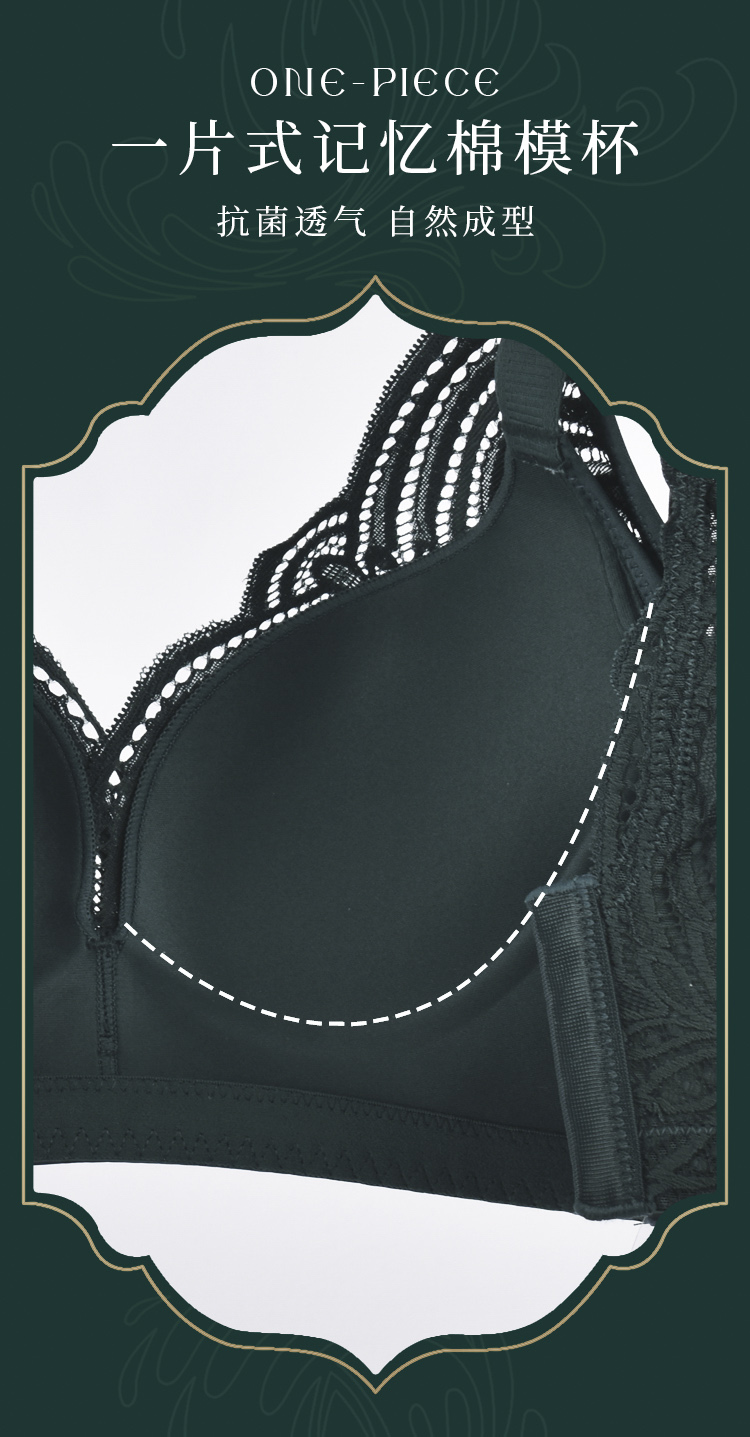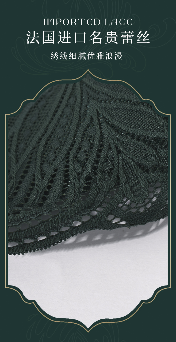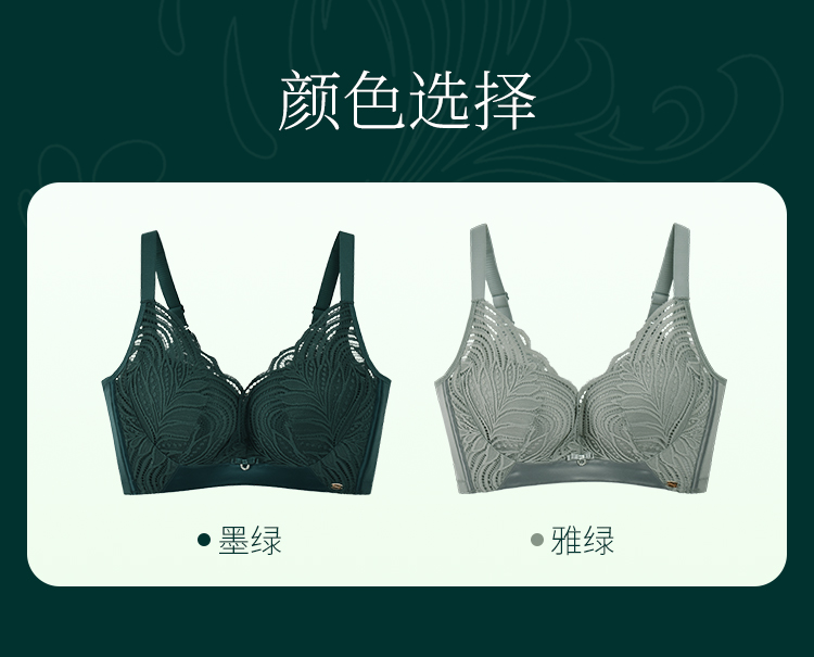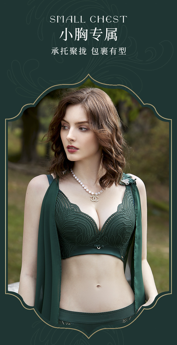 新款高级孔雀墨绿小胸聚拢舒适承托3D记忆棉透气聚拢收副乳文胸WWJ232-3