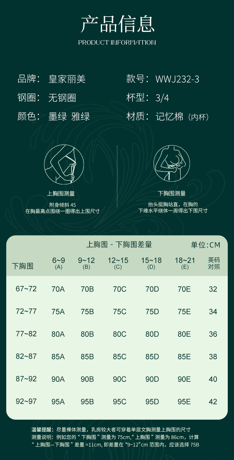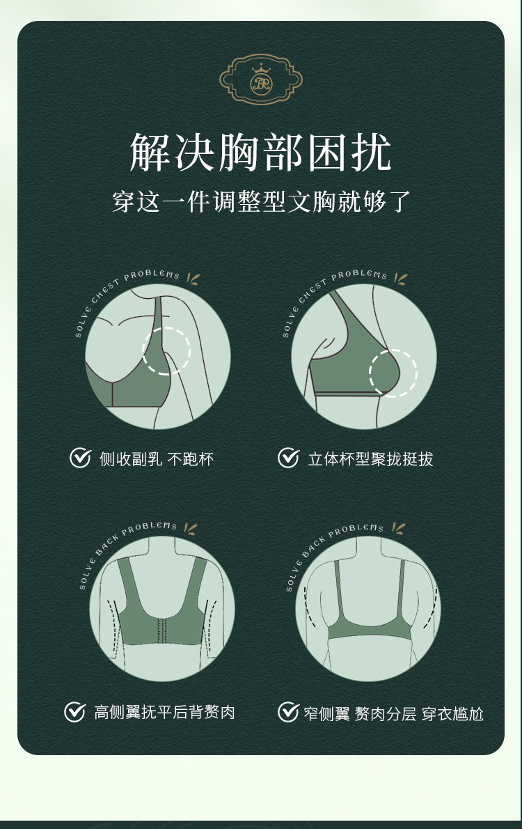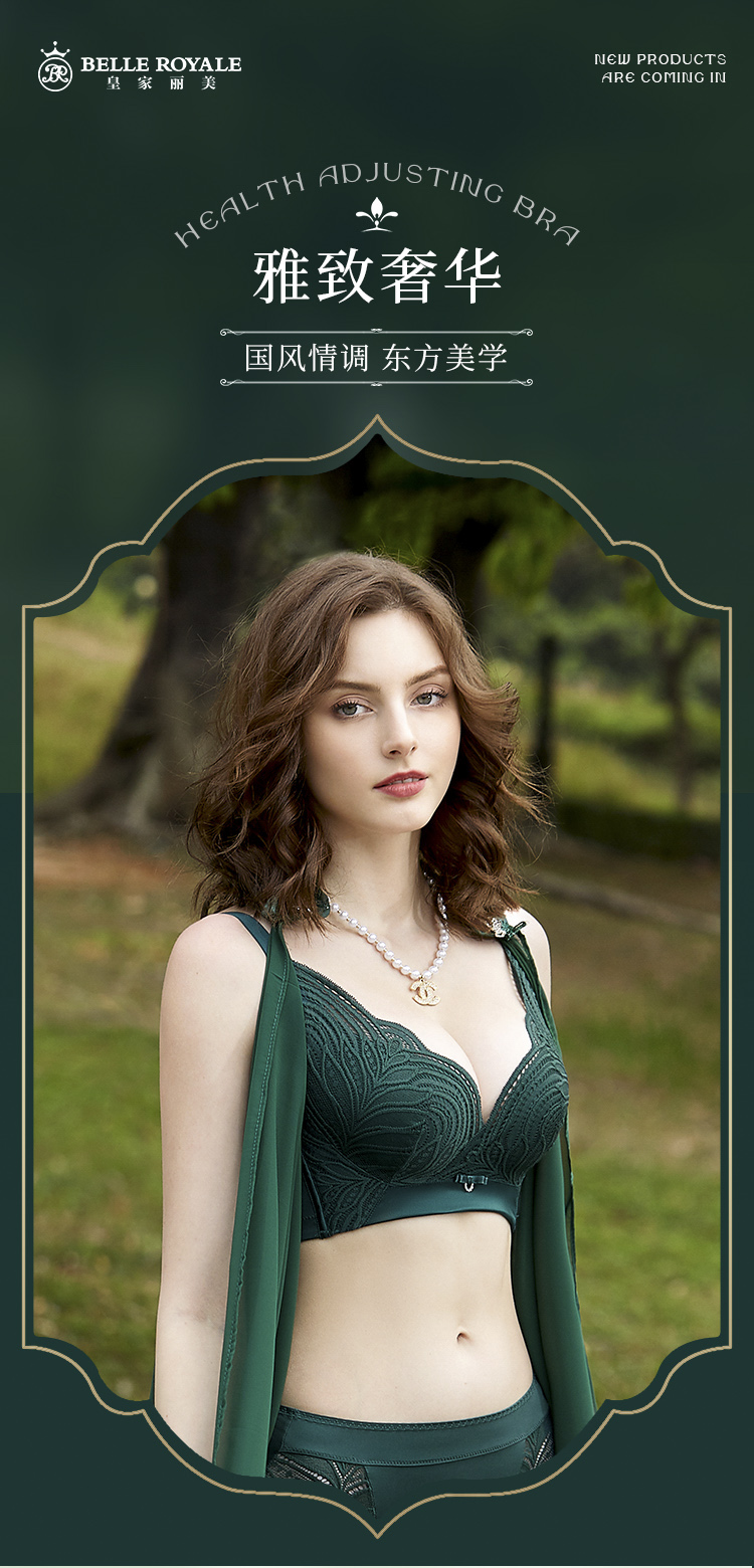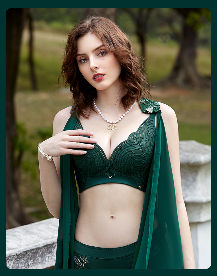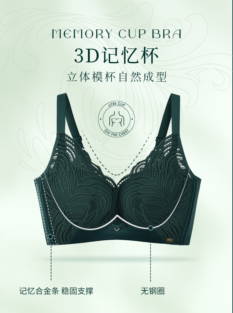 新款高级孔雀墨绿小胸聚拢舒适承托3D记忆棉透气聚拢收副乳文胸WWJ232-3